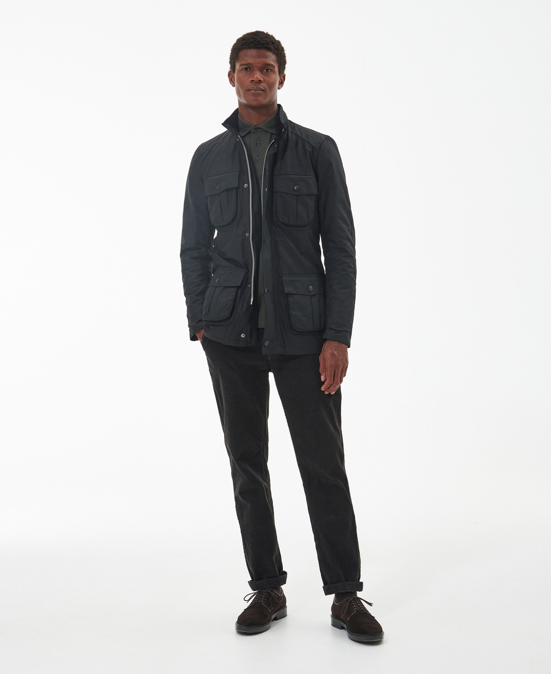 The Corbridge is a rugged utility-style men’s waxed jacket updated with a contemporary engineered fit. With winter in mind, this multi-functional jacket is constructed in Barbour’s hardy 6oz Sylkoil waxed cotton with a comfortable, lightweight Nylon lining quilted to 50g wadding, for additional warmth. The corduroy-lined funnel collar features an integral Nylon hood complete with adjustable toggles for a perfect fit, offering wet-weather defence when needed but easily stowed away in the collar on dry days. Built to offer comfort and protection to those who are active outdoors in any weather, the Corbridge benefits from adjustable cuffs, a robust two-way zip, a storm fly front with stud fastenings and an action back. The classic four-pocket detail adds a stylish, practical feature that keeps essentials safe and hands free. Available in a choice of three versatile colours. As this is a slim fitting jacket, we would advise purchasing the next size up than you would normally choose.