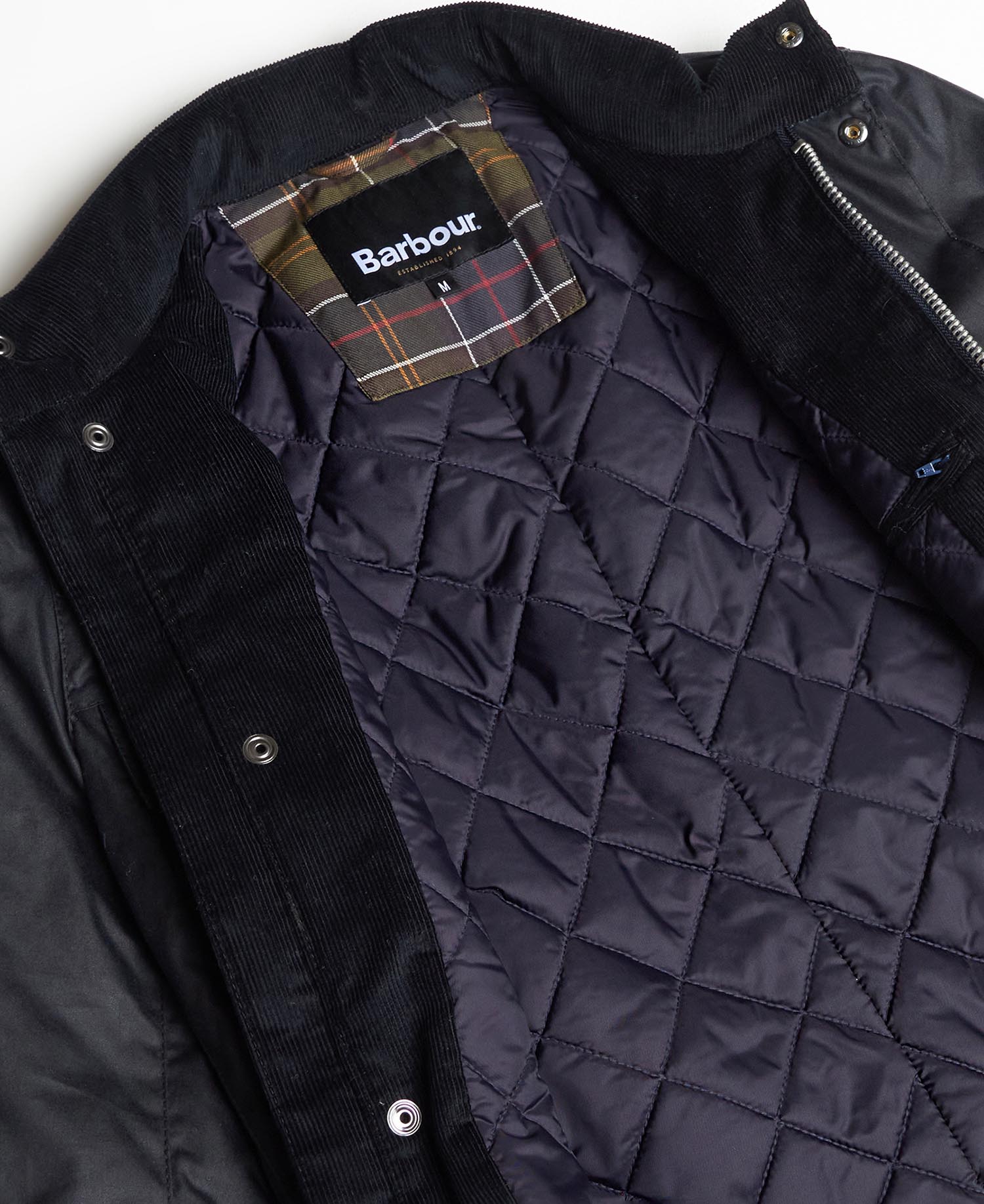 The Corbridge is a rugged utility-style men’s waxed jacket updated with a contemporary engineered fit. With winter in mind, this multi-functional jacket is constructed in Barbour’s hardy 6oz Sylkoil waxed cotton with a comfortable, lightweight Nylon lining quilted to 50g wadding, for additional warmth. The corduroy-lined funnel collar features an integral Nylon hood complete with adjustable toggles for a perfect fit, offering wet-weather defence when needed but easily stowed away in the collar on dry days. Built to offer comfort and protection to those who are active outdoors in any weather, the Corbridge benefits from adjustable cuffs, a robust two-way zip, a storm fly front with stud fastenings and an action back. The classic four-pocket detail adds a stylish, practical feature that keeps essentials safe and hands free. Available in a choice of three versatile colours. As this is a slim fitting jacket, we would advise purchasing the next size up than you would normally choose.