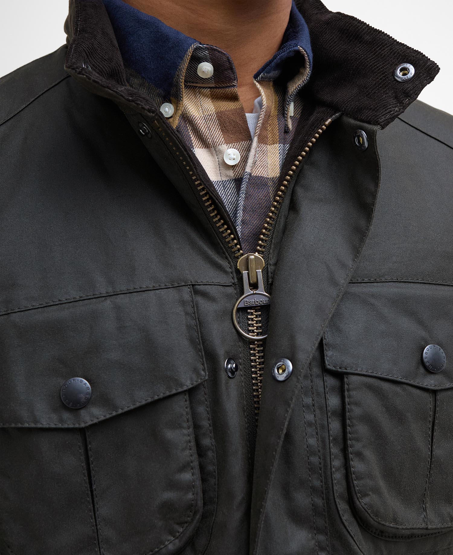 The Corbridge is a rugged utility-style men’s waxed jacket updated with a contemporary engineered fit. With winter in mind, this multi-functional jacket is constructed in Barbour’s hardy 6oz Sylkoil waxed cotton with a comfortable, lightweight Nylon lining quilted to 50g wadding, for additional warmth. The corduroy-lined funnel collar features an integral Nylon hood complete with adjustable toggles for a perfect fit, offering wet-weather defence when needed but easily stowed away in the collar on dry days. Built to offer comfort and protection to those who are active outdoors in any weather, the Corbridge benefits from adjustable cuffs, a robust two-way zip, a storm fly front with stud fastenings and an action back. The classic four-pocket detail adds a stylish, practical feature that keeps essentials safe and hands free. Available in a choice of three versatile colours. As this is a slim fitting jacket, we would advise purchasing the next size up than you would normally choose.