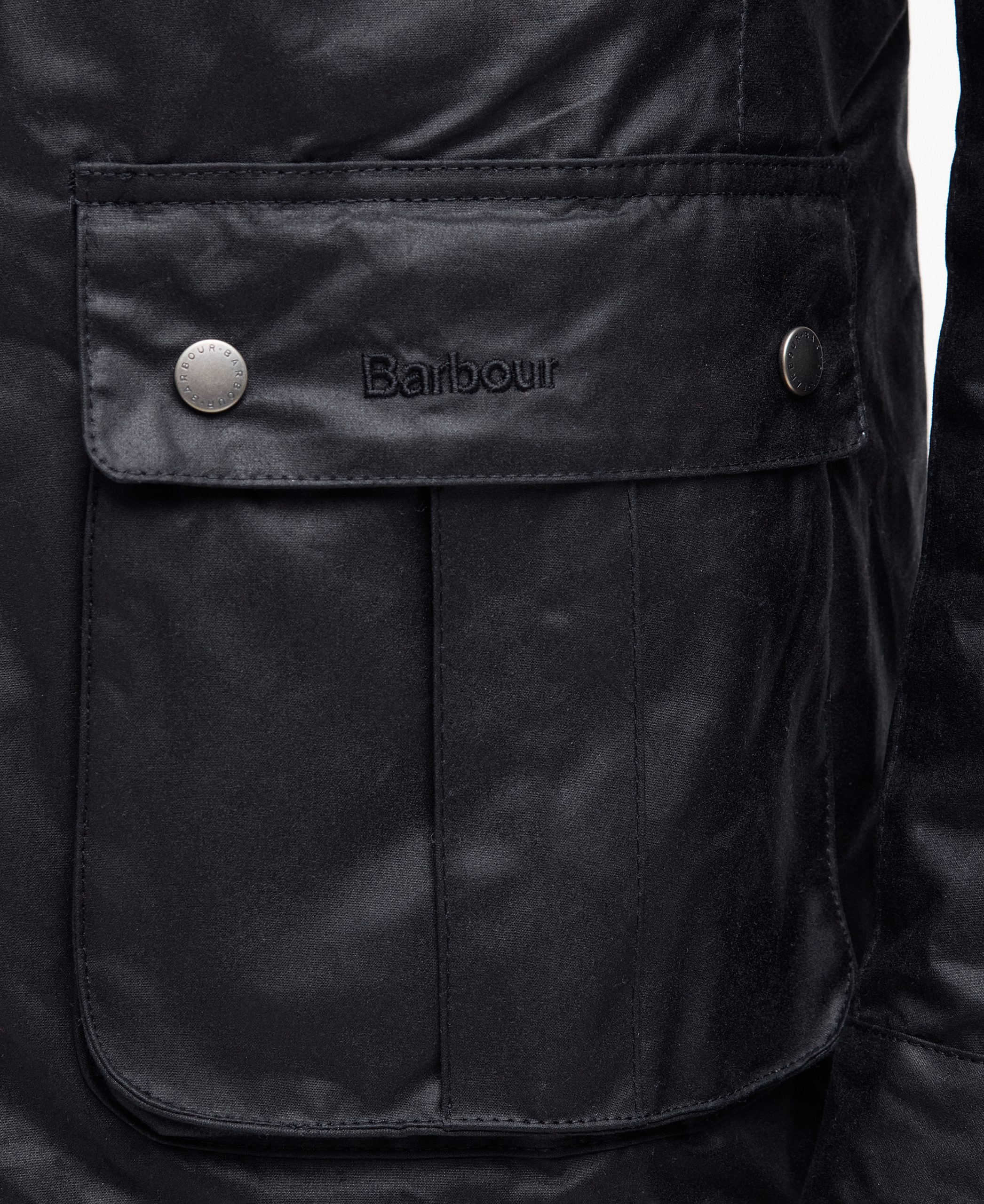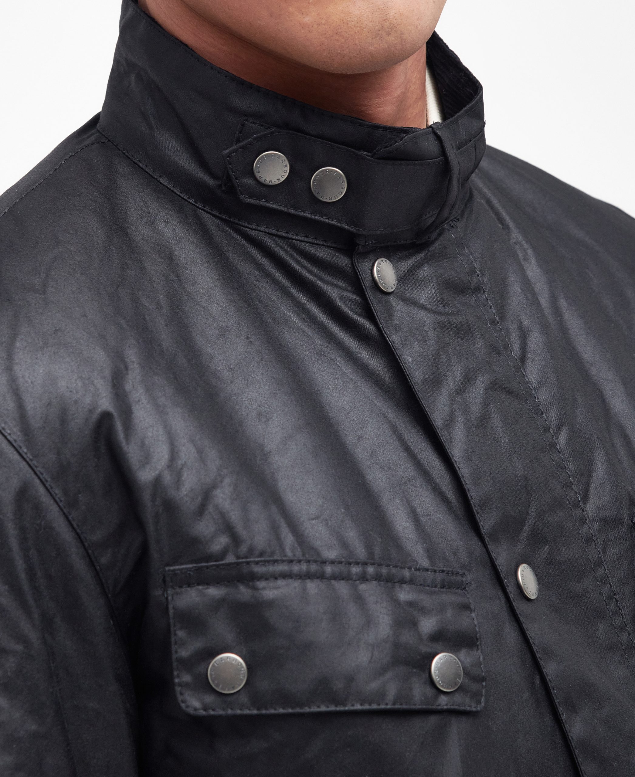 The Barbour International Duke Wax Jacket reworks the iconic Enfield style for robust winter insulation. Made from Thornproof waxed cotton, it stays true to the biker aesthetic with four outer pockets and elbow patches.