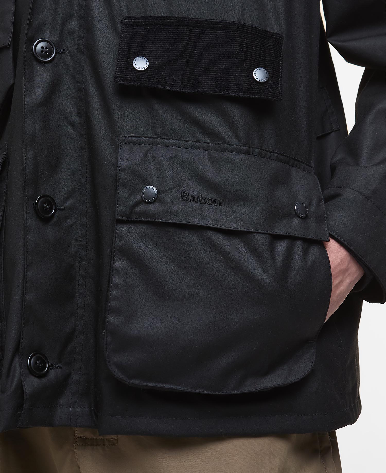 Combining classic design with practical detailing, the Barbour Editor Waxed Jacket is crafted from durable 6oz waxed cotton and lined with our signature tartan. Designed for versatility, it features a stand collar with a concealed stowaway hood, multiple utility pockets, and side-entry lower pockets for added convenience. A modern take on timeless outerwear.