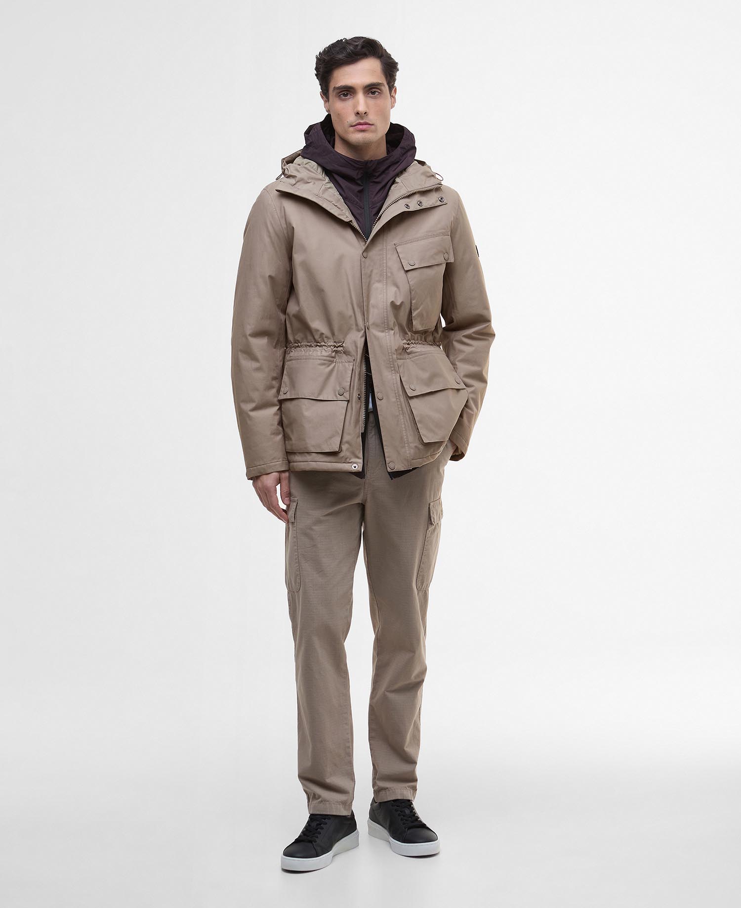 The Barbour International Endley Waterproof Jacket guarantees style no matter what the weather with its unwavering attention to detail. Featuring an angled map pocket and lower bellow pockets for a city meets countryside adventures staple, its shock cord adjustment to the waist and hood allows for a playful take on silhouette styling. The zip and stood front fastening keeps things casual while the embossed Barbour International logo to the sleeve finishes the garment.