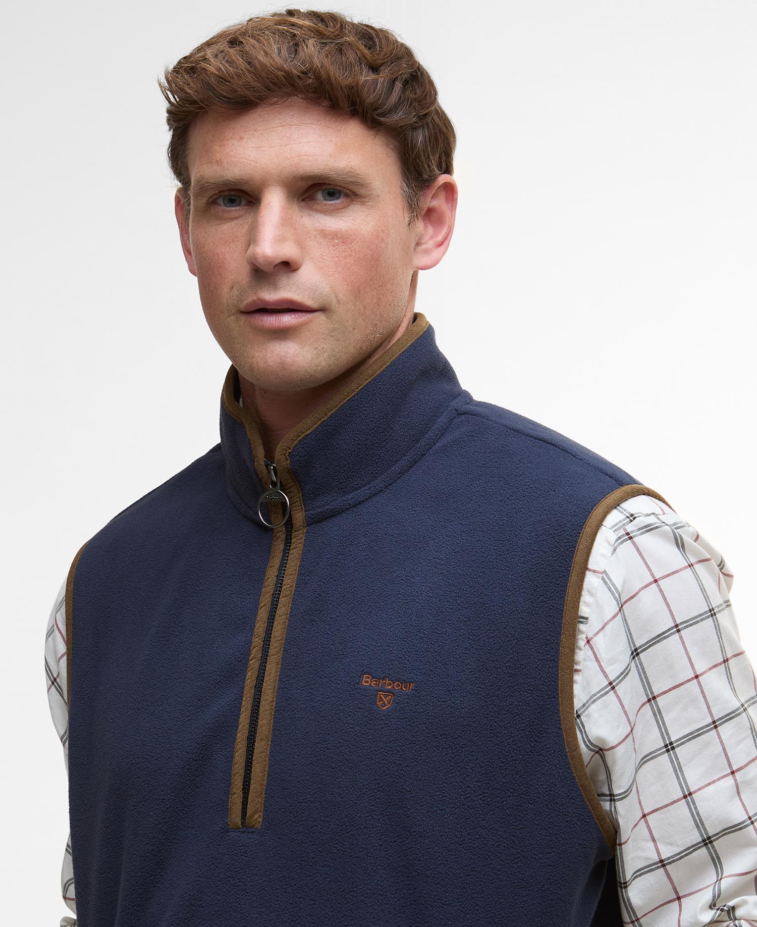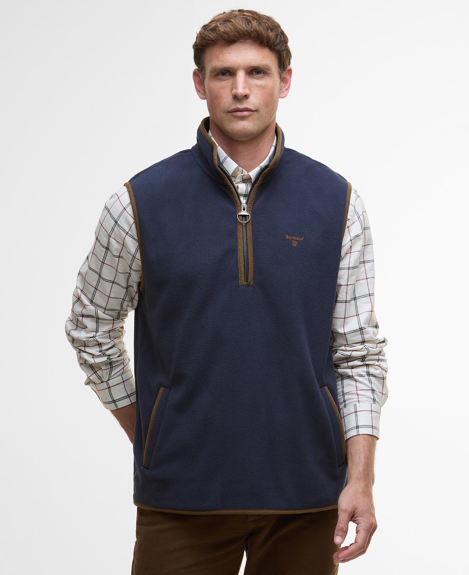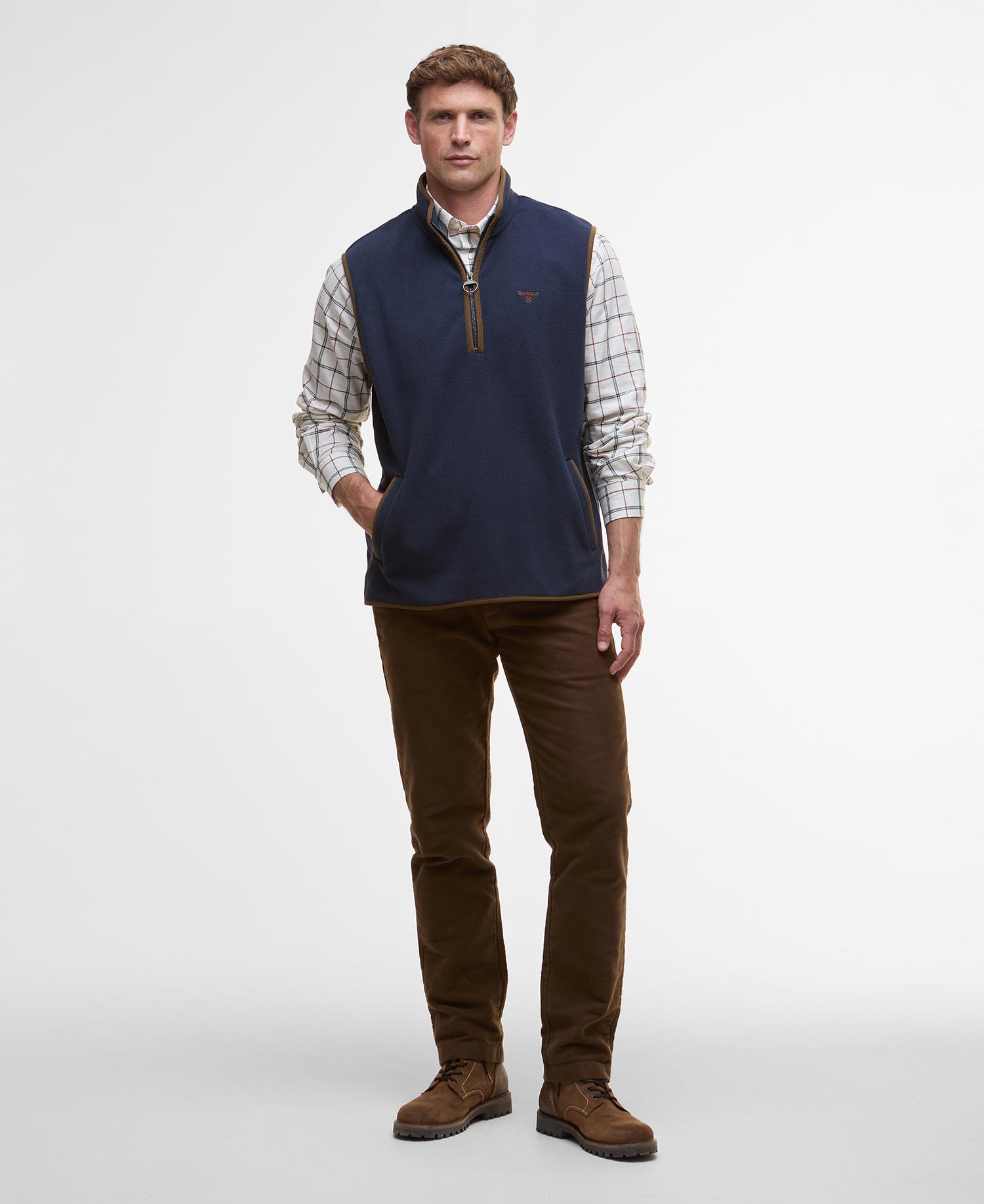 Providing the perfect layer for the colder seasons ahead, the Barbour Harwood Half-Zip Fleece Gilet is crafted from micro fleece fabric to provide optimal warmth. The perfect piece for layering under our lighter weight jackets or styling alone paired over a shirt, this minimal style is sure to be a go-to in your transeasonal wardrobe.