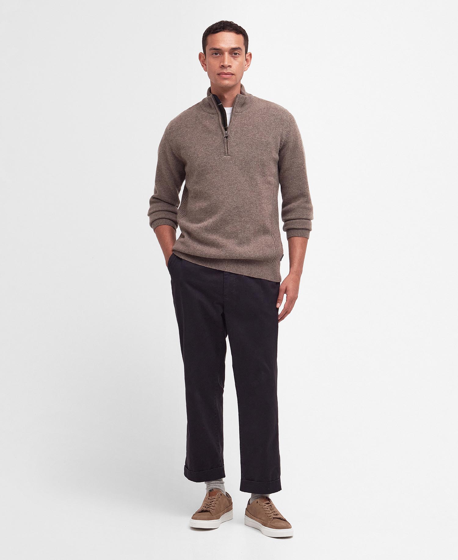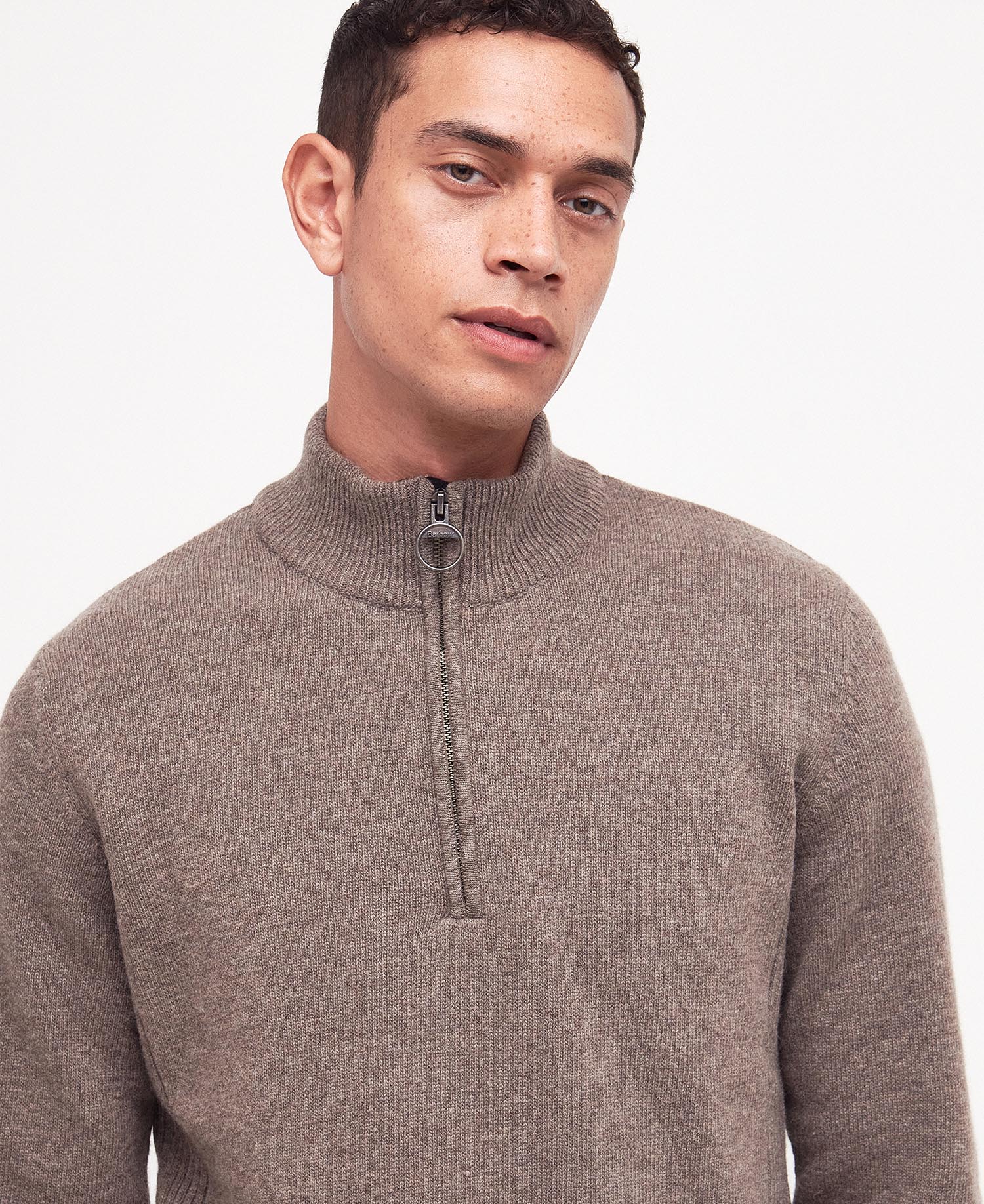 The Holden Half Zip is a stylish and versatile men’s jumper crafted in luxurious lambswool. This warm sweater makes an ideal winter layering piece – easy to throw over a shirt or top when extra warmth is required. It’s styled with fully fashioned armholes and a cosy ribbed funnel neck, which fastens with a Barbour-branded zip. Ribbed side panels and contrast elbow patches add subtle yet eye-catching extra details.
