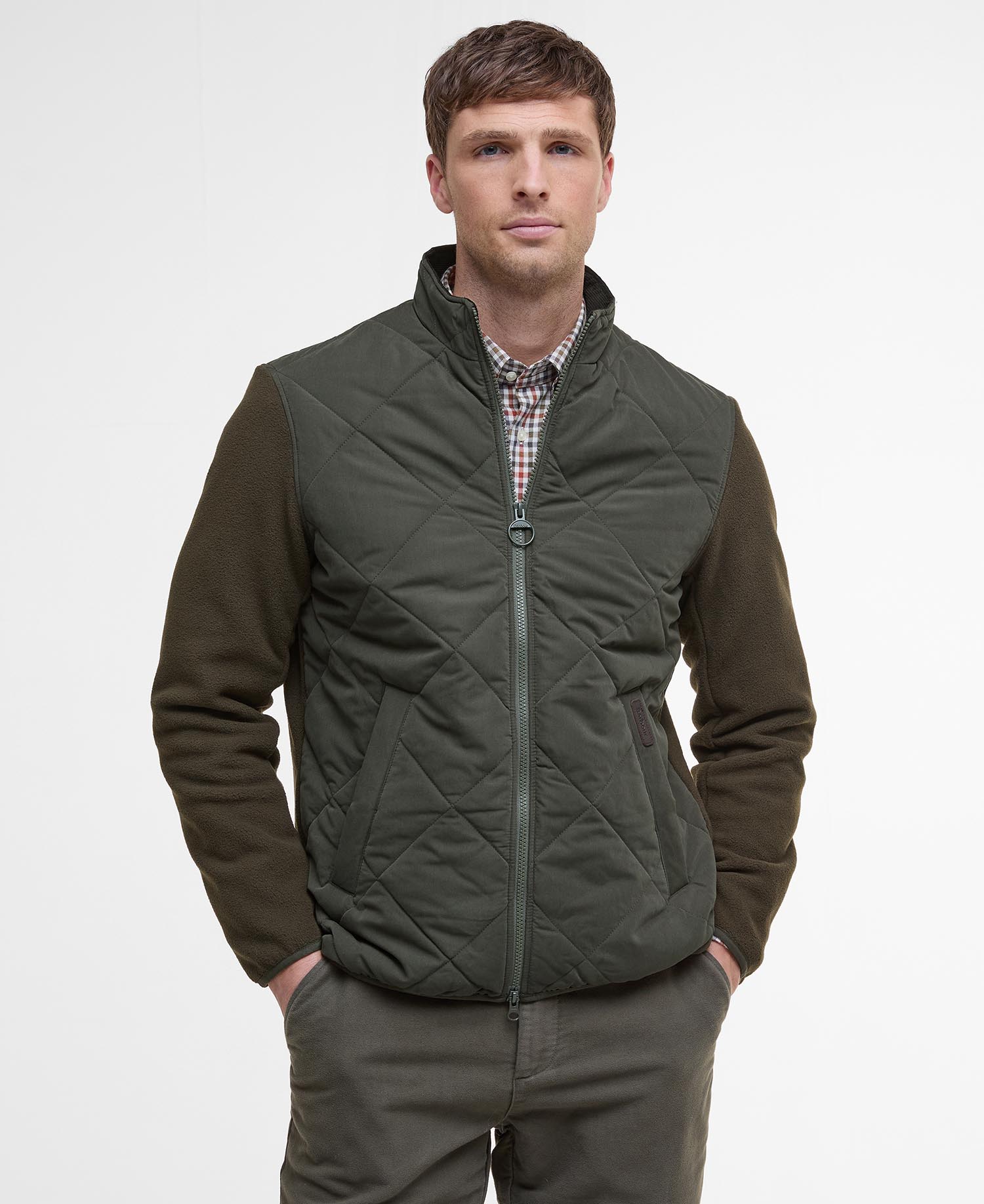The Barbour Hybrid Fleece Jacket combines the best of both worlds: warmth and style. Featuring traditional box quilting to the body to keep the core temperature steady, it boasts contrasting sleeves in cosy fleece fabric. Corduroy detailing to the inner collar and tartan trims inside give it a classic look that’s unmistakably Barbour.