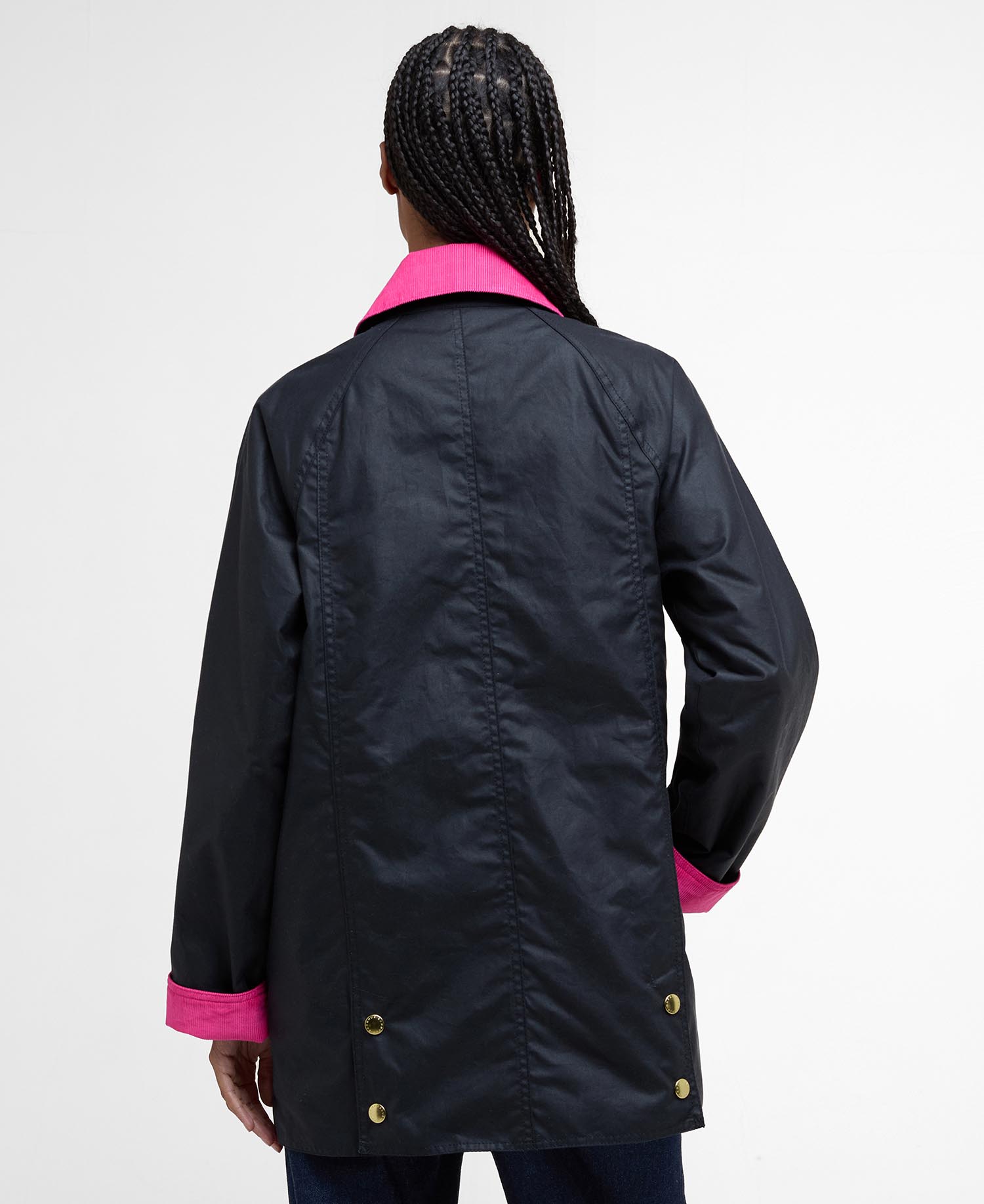 Crafted in timeless Thornproof waxed cotton, the Barbour Icons Modern Beadnell Waxed Jacket is your ultimate style-meets-function companion. Its flattering, feminine silhouette takes cues from the legendary Beadnell®, while the vibrant corduroy collar gives modern charm to this classic design. With practical saddle andcosy handwarmer pockets, and back vents for ease of movement, it’s as versatile as it is iconic. Whether braving a chilly countryside stroll or dashing through town, this jacket is ready for any adventure. Pair it with the matching reversible liner from this collection for a bold look.