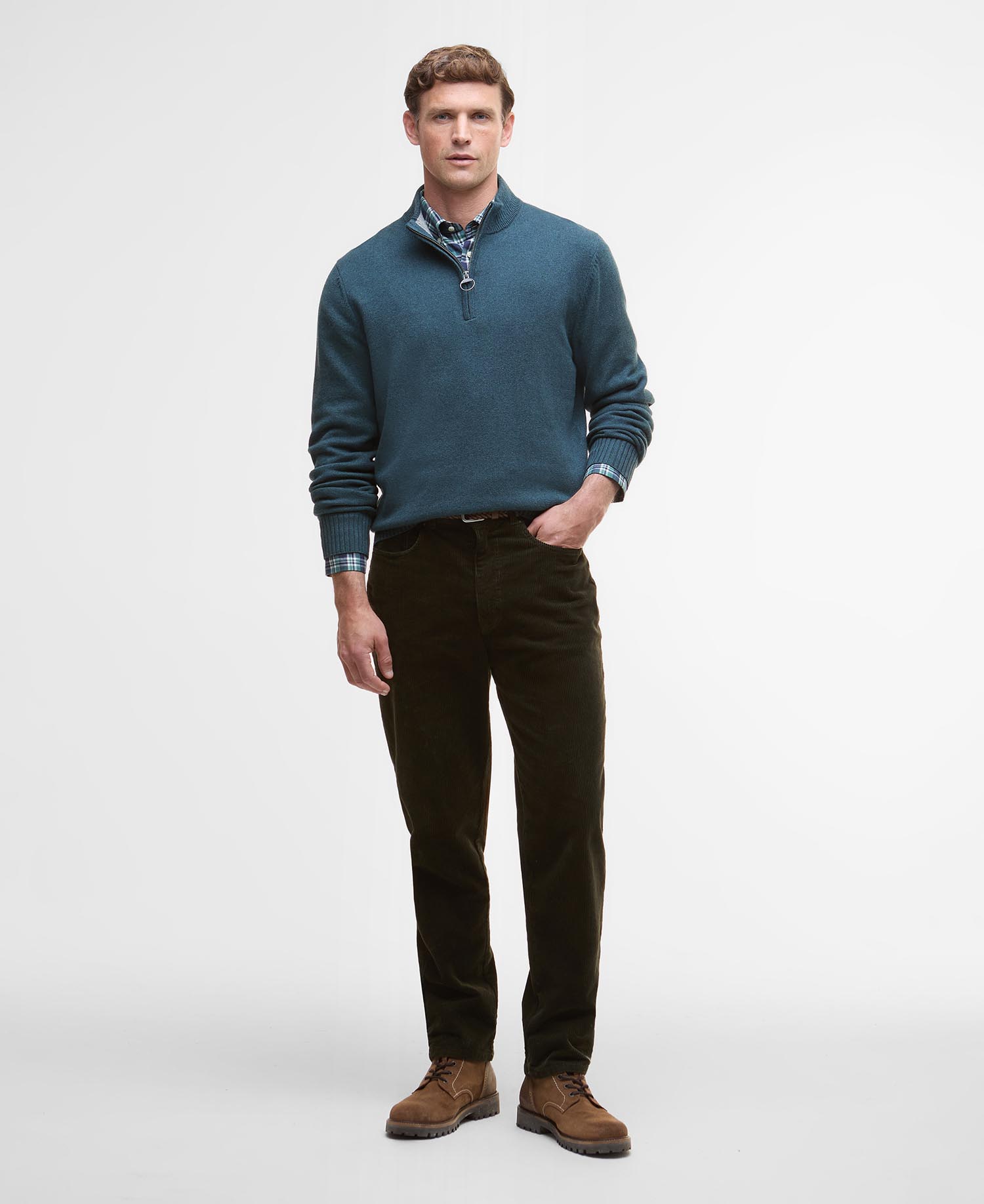 Introducing the Barbour Kelson Half-Zip Jumper, crafted from a premium wool-blend with ribbed half-zip neckline, cuffs and hem. This stylish and versatile piece is perfect for layering, adding a sophisticated touch to any outfit, suitable for a range of occasions.