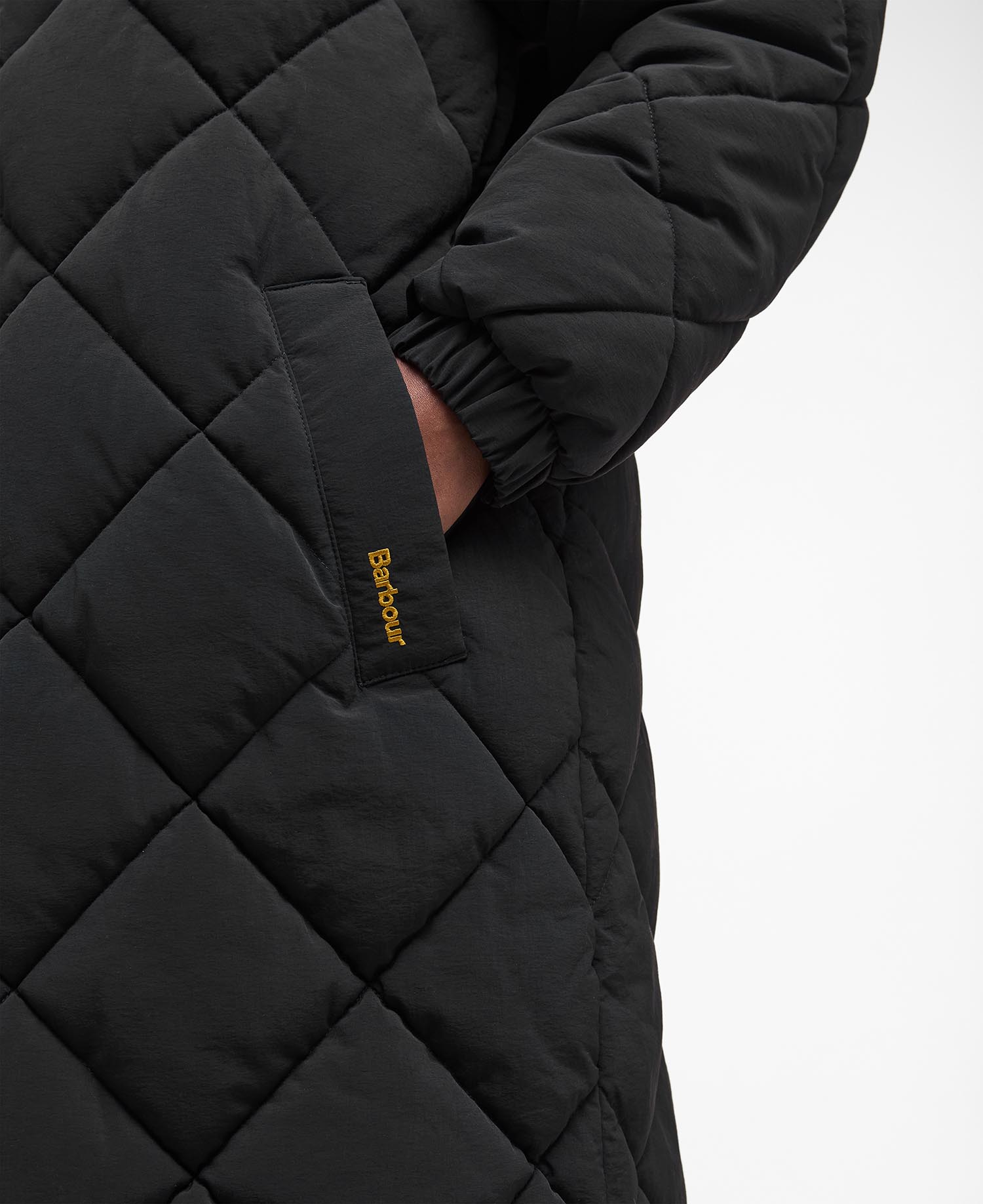 Invest in Barbour’s signature diamond quilting with the Barbour Kirkton Puffer Jacket.This longline style features Barbour’s iconic diamond quilting in a magnified form thanks to its 4″ style. Complete with an oversized fixed hood and elastic cuff details to lock in the warmth, it’s perfect for heading out into the colder weather.