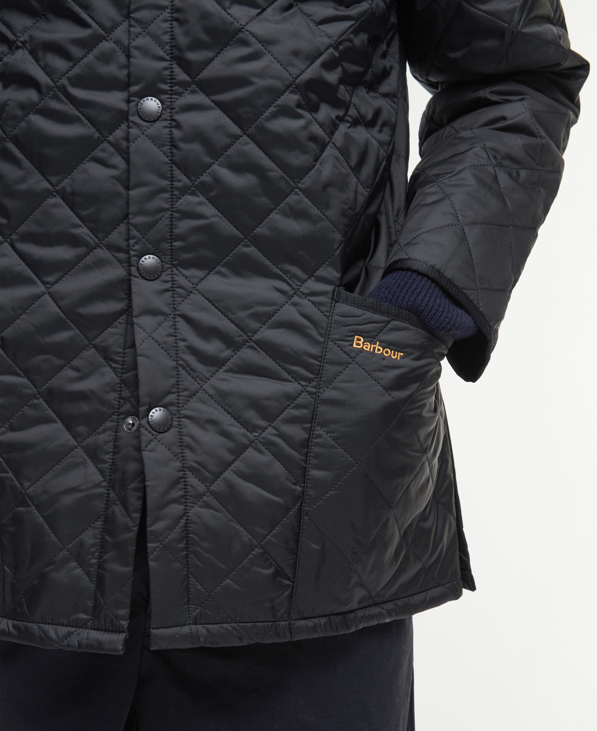 The Liddesdale provides plenty of room for laying and a generous fit, we suggest you go down one size if you prefer to wear this as a summer jacket. One of the most iconic Barbour jackets, the original Liddesdale jacket is a firm favourite year after year. With Barbour’s signature diamond quilted outer and a warm yet lightweight contrast nylon lining, this popular men’s quilted jacket is durable, simple and stylish. From the Classic collection and available in a range of wearable colours, it features a robust front stud fastening to protect from the elements, and a smart sit-down cord collar that can be raised for additional warmth and protection, with a luxuriously soft feel against the skin. With a generous fit, the Liddesdale provides plenty of room for layering up with chunky knits and insulating gilets, while the studded rear vents ensure comfort and ease of movement. The signature front patch pockets are trimmed with contrast Barbour embroidery and are generously proportioned, while a zipped inner security pocket safeguards valuables. A timeless addition to any winter wardrobe.