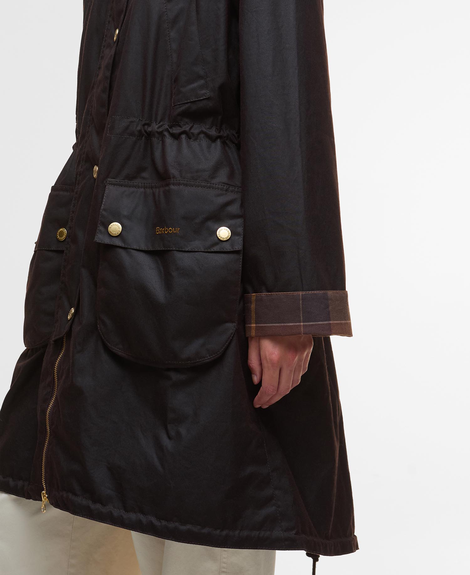Prepare your wardrobe for the cooler weather with the Barbour Marcy Waxed Parka—a timeless classic reimagined for all-weather wear. Featuring a warm tartan lining, practical pockets, and a hood designed to defy even the harshest winds, this jacket combines effortless style with unbeatable comfort.