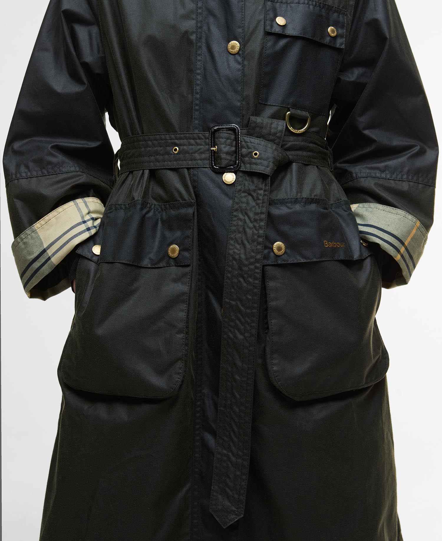 Barbour Men’s Milda Waxed Trench Coat | Fern & Sage & Ancient Tartan