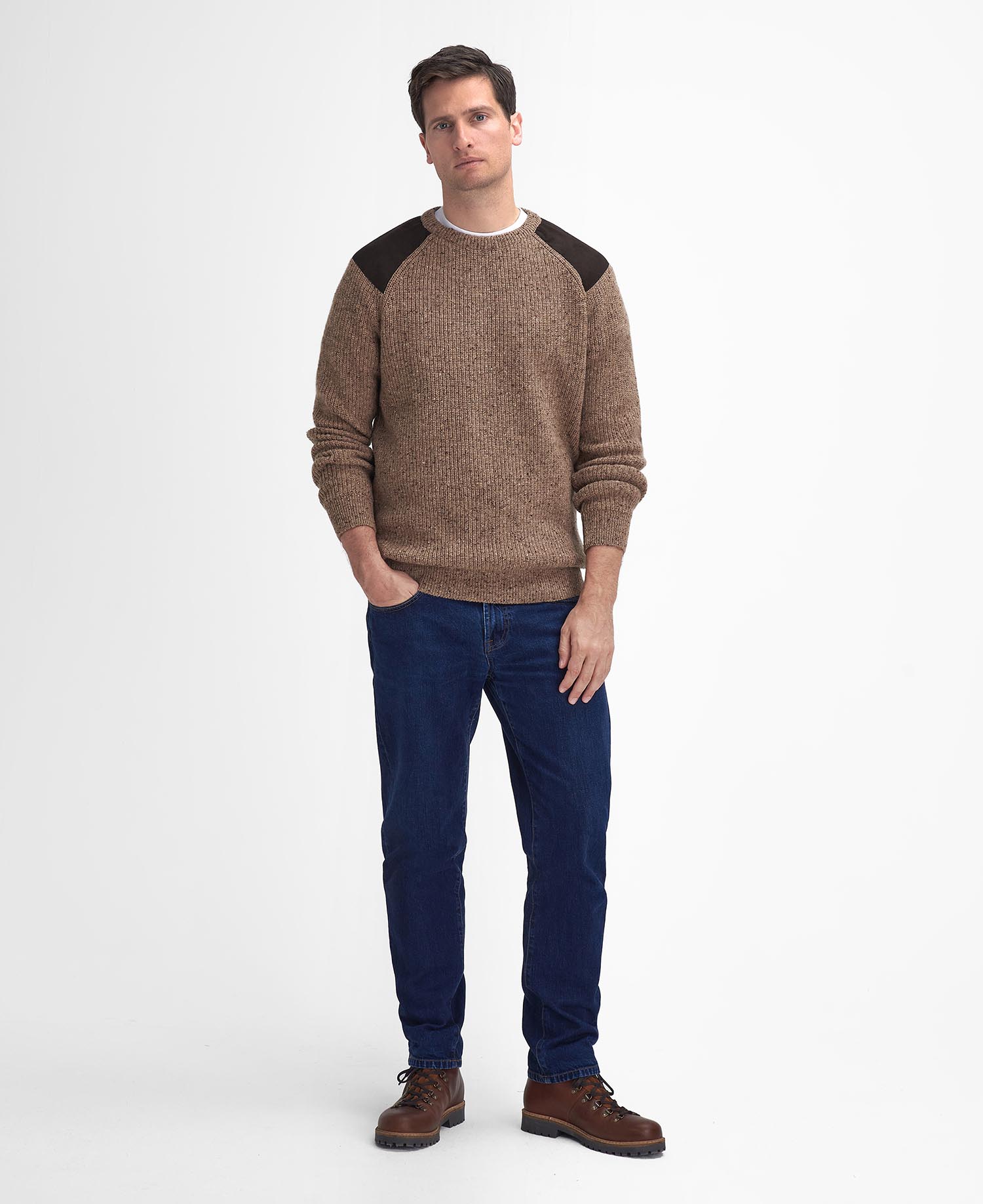 The Barbour Raisthorpe Jumper has all the hallmarks of a countrywear classic: a warm crew neck, rib-knit design and contrasting shoulder detail. Woven from a wool-rich blend with twisted yarns for added softness, it’s finished with a branded label to the lower hem as a sign of its premium credentials.