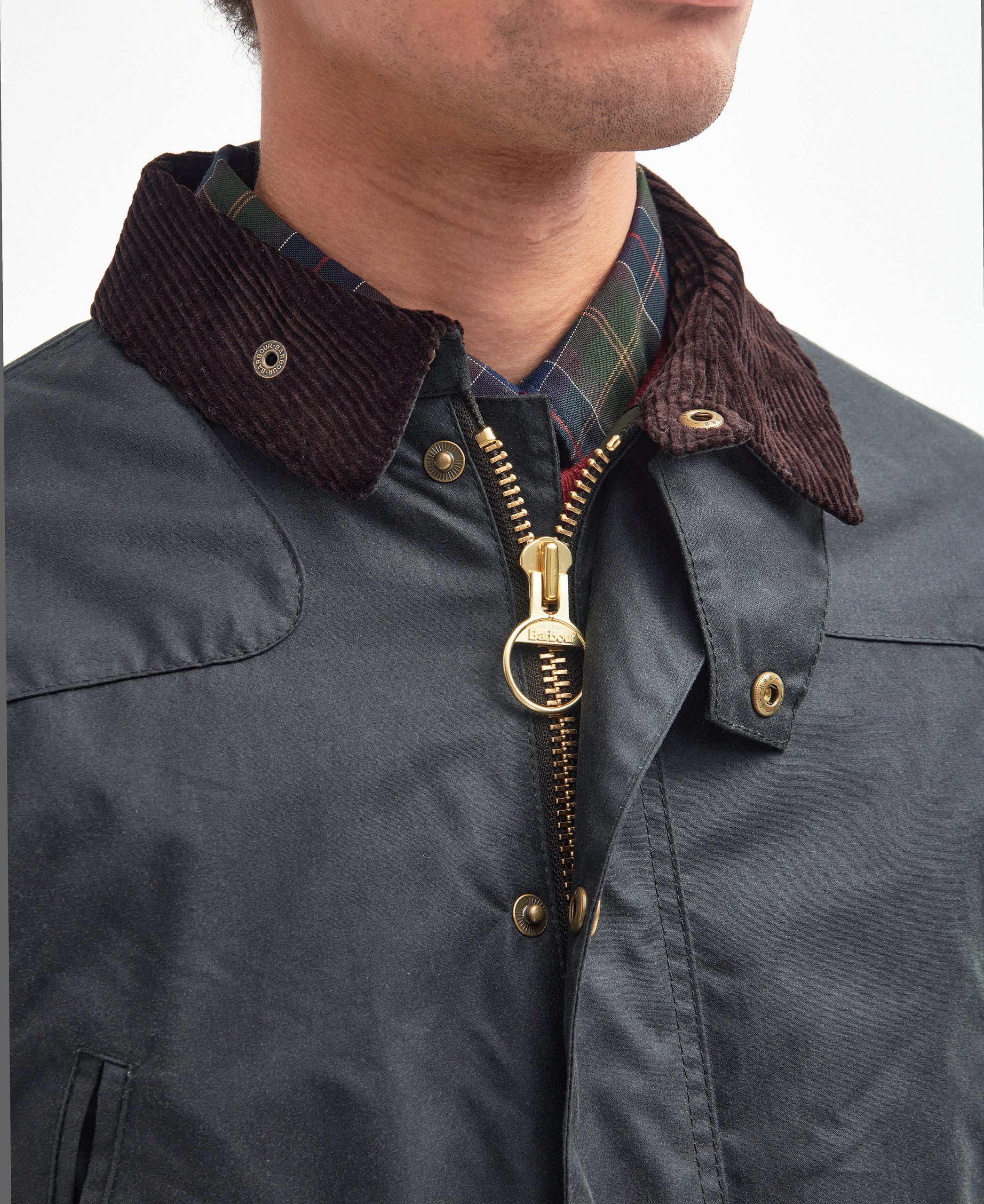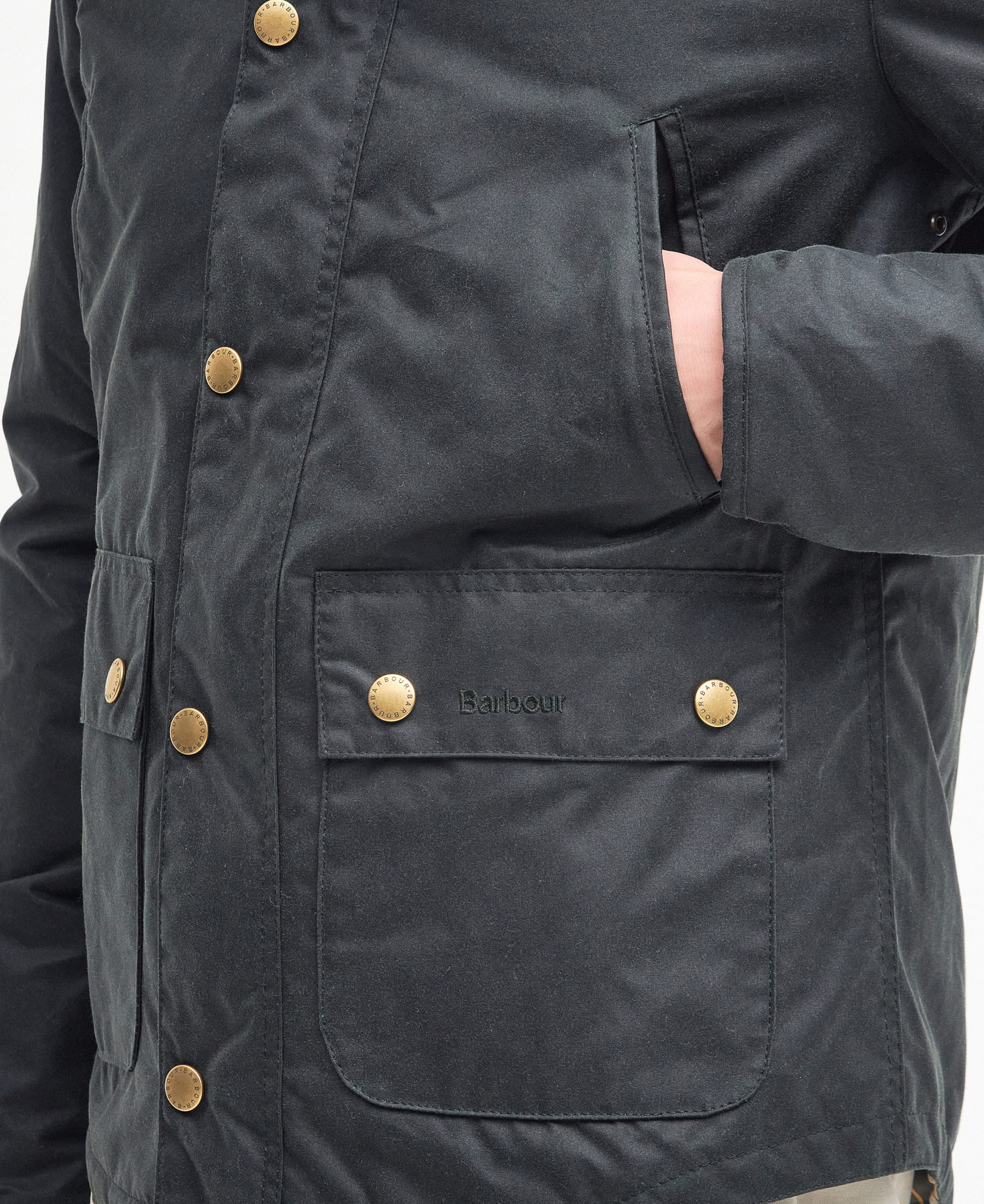 The Barbour Reelin Jacket features a 6oz wax style with a classic tartan lining. Styled with a stand collar, two jetted and two lower bellow pockets for easy wearing this jacket showcases a timeless style.