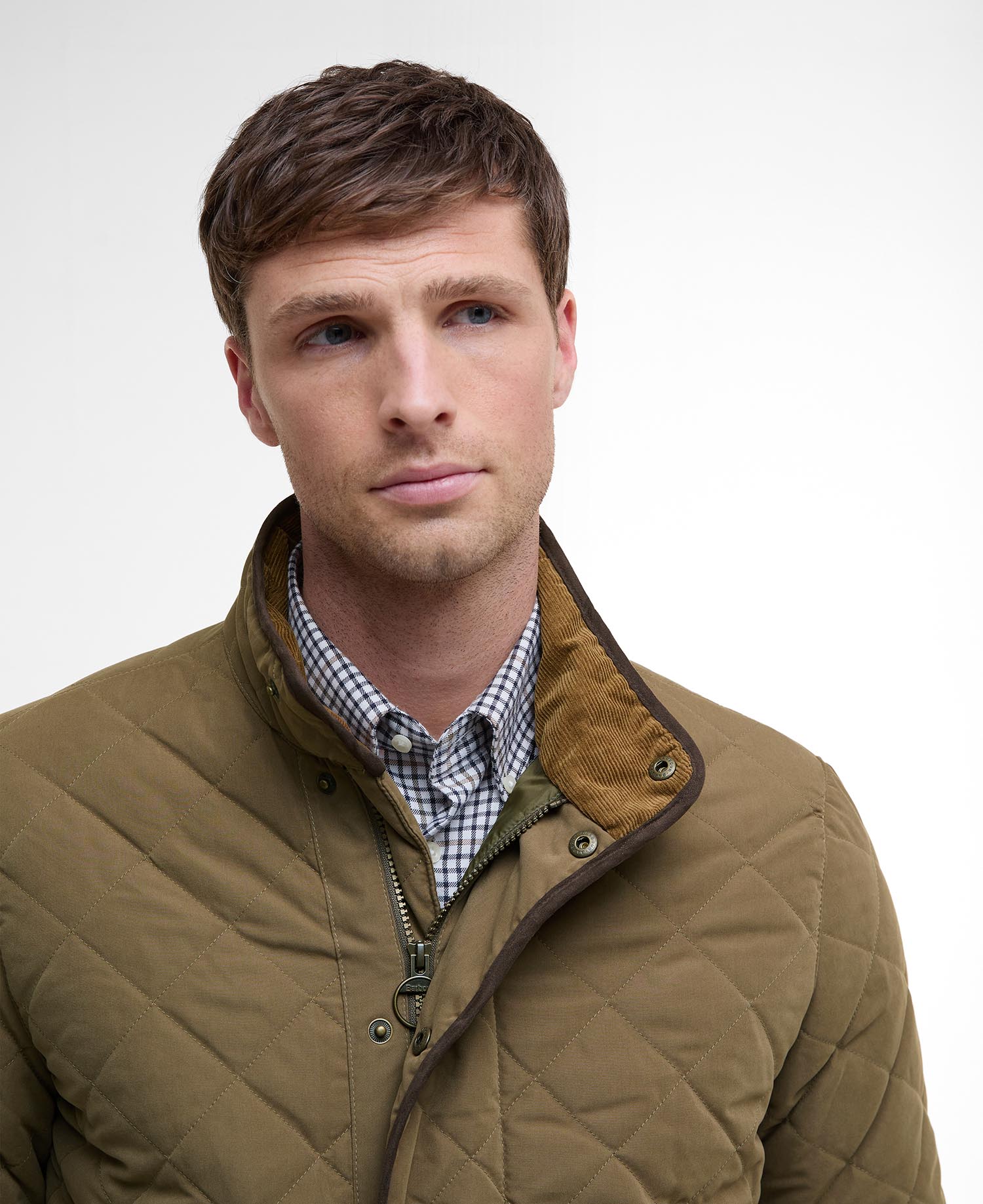The Barbour Waterproof Shoveler Quilted Jacket boasts a stand collar and zip fastening with a stud front placket. Perfect for a warm and waterproof design, this jacket offers a tartan inner yoke and pocket and is finished with a leather badge to the bottom left of the jacket.