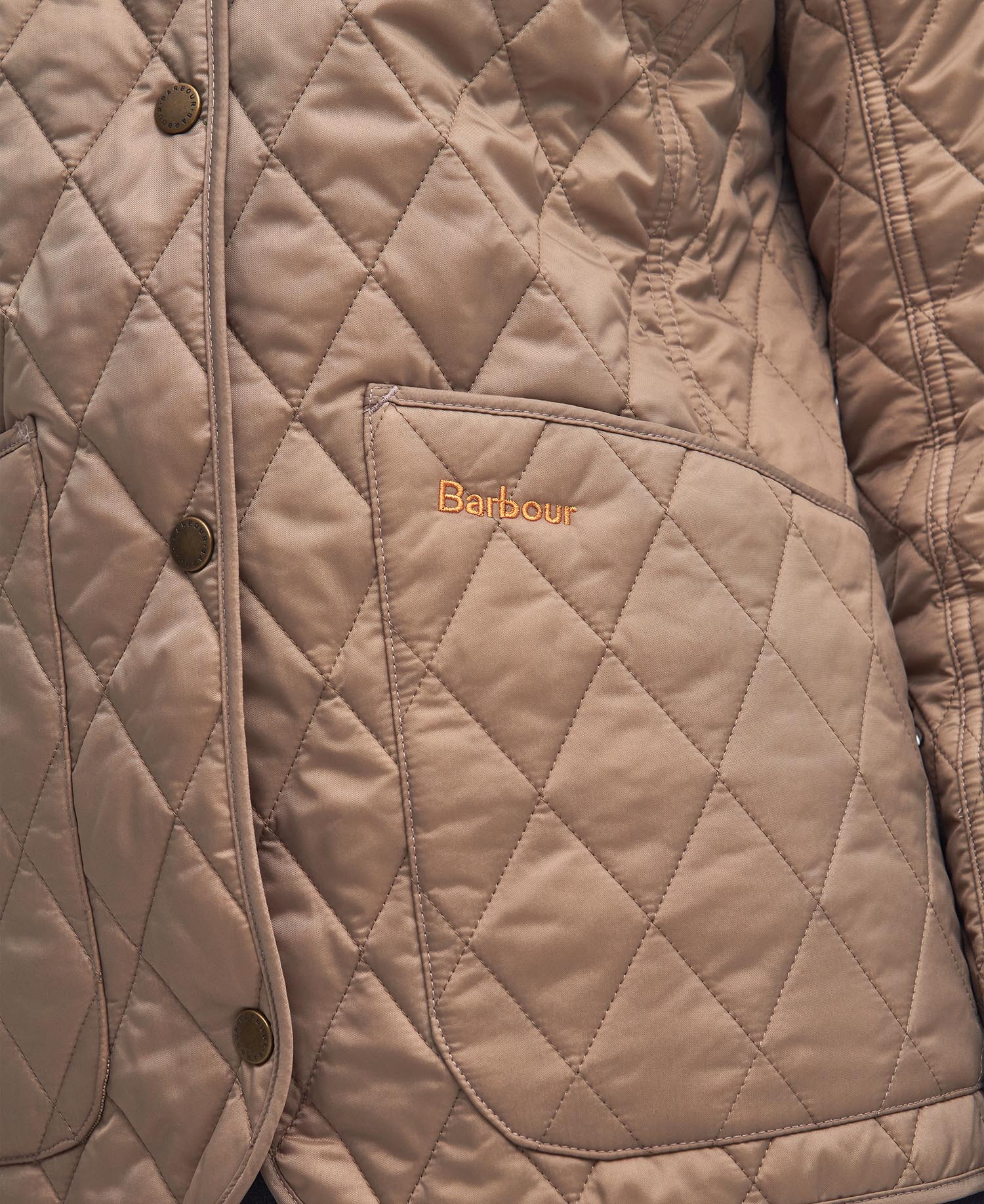 This stylish women’s quilted jacket is designed with flatteringly shaped body seams for a beautifully feminine silhouette. The sit-down cord collar and diamond-quilted outer creates the signature Barbour look.