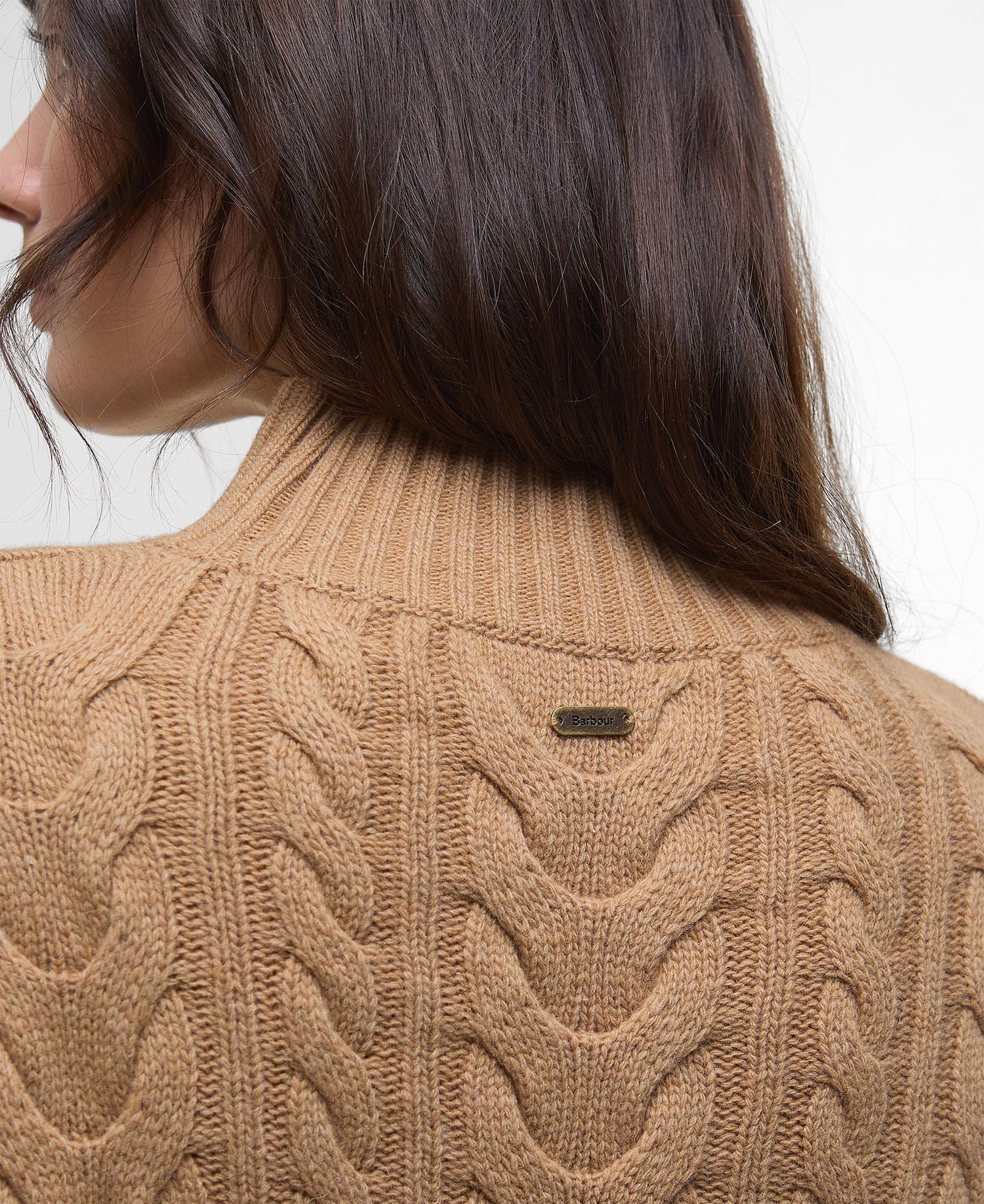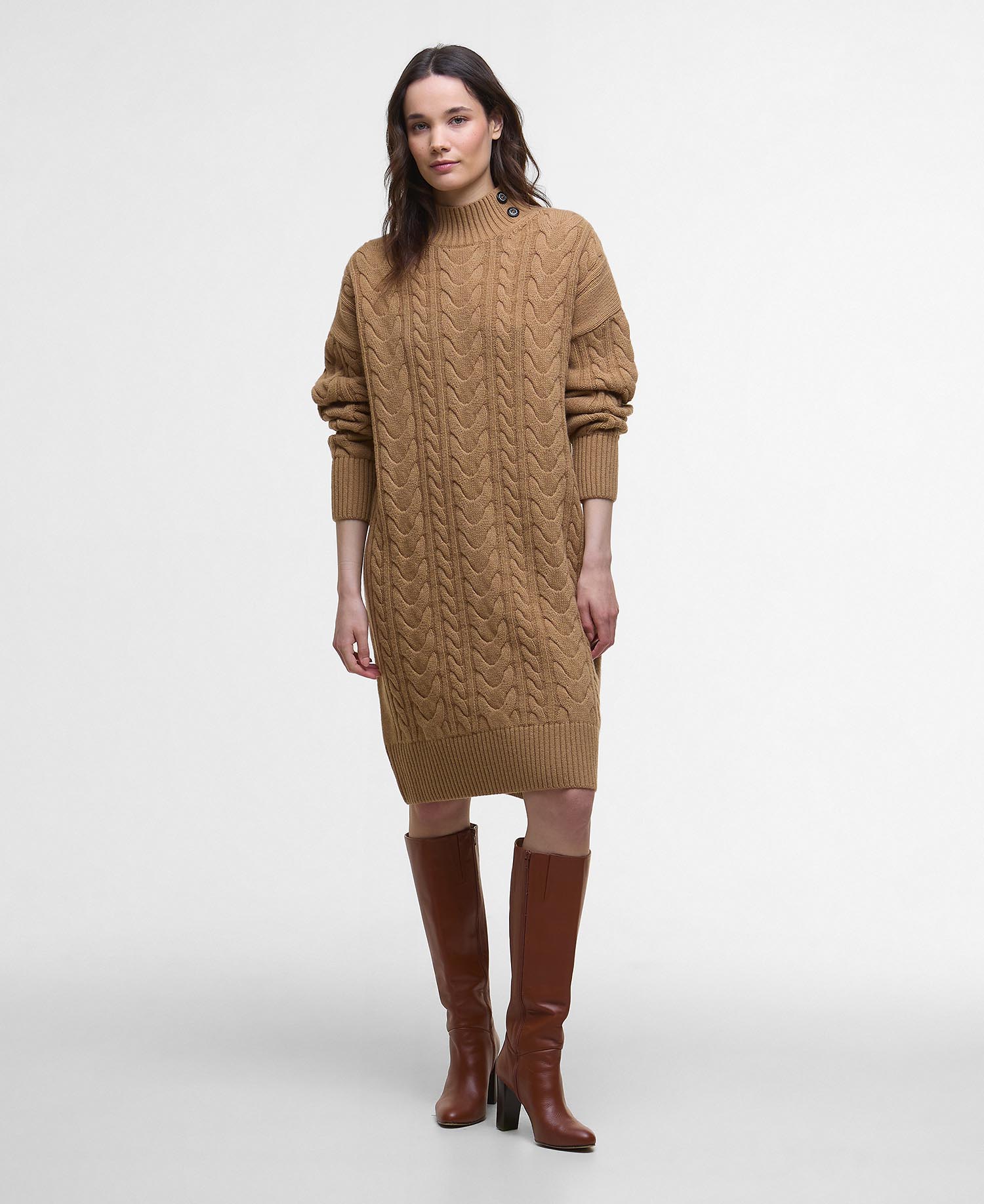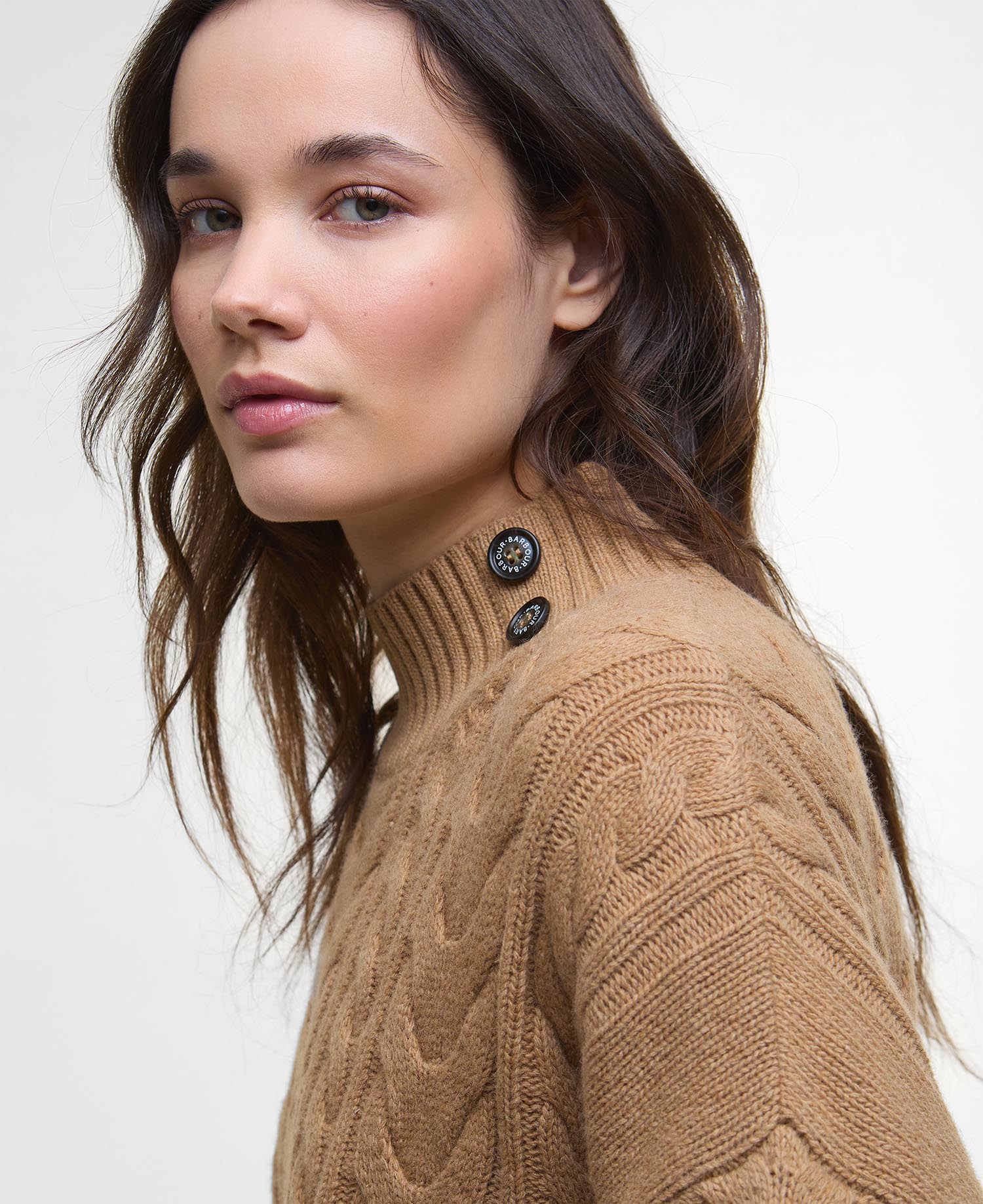 Wrap up in comfort with the Barbour Belford Knitted Mini Dress. Crafted from a cosy wool blend, this dress features a modern cable pattern, relaxed dropped shoulders, and a stylish funnel neck. Finished with ribbed trims and playful mock horn buttons at the side, it’s ready to keep you warm while looking effortlessly put together.