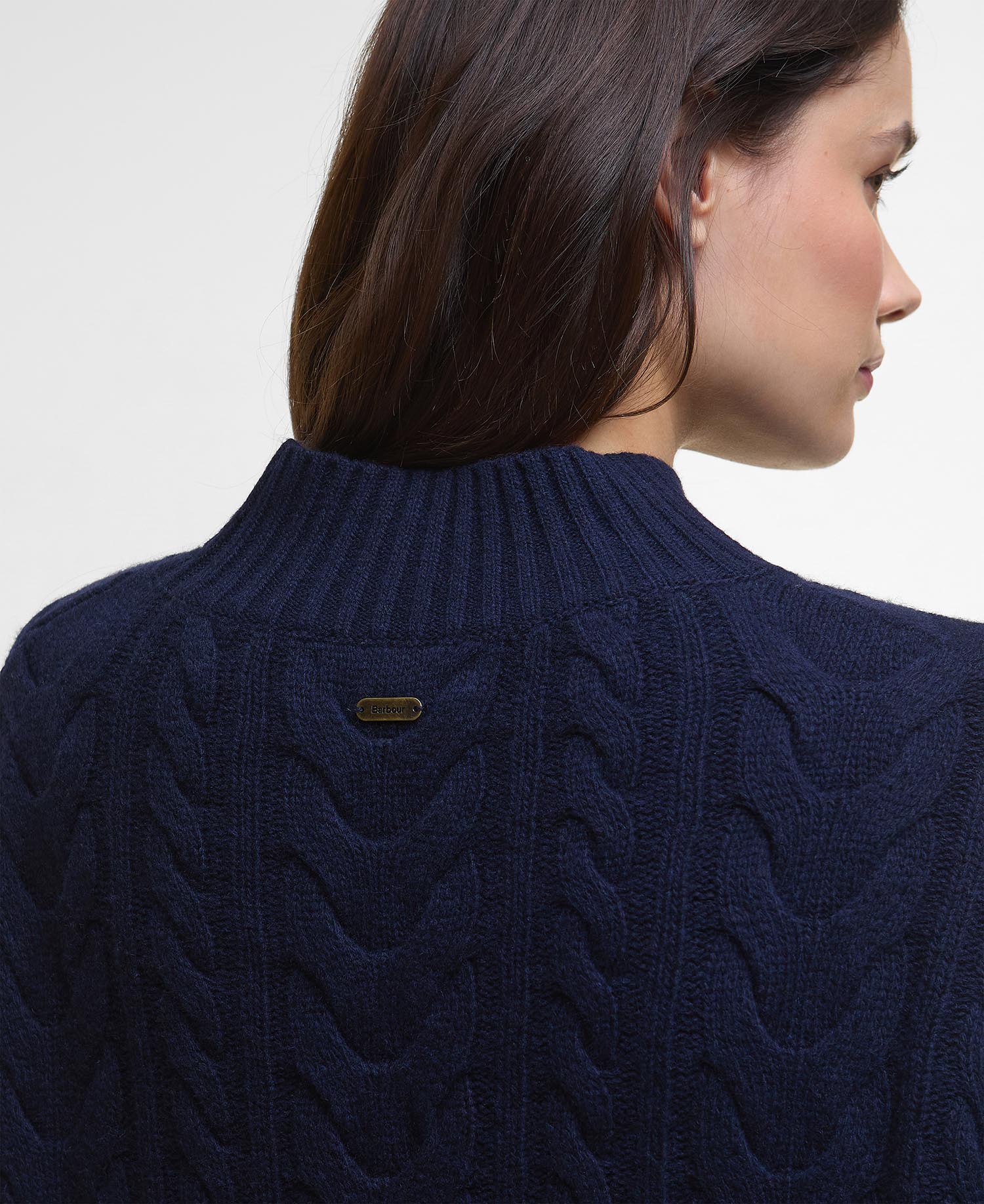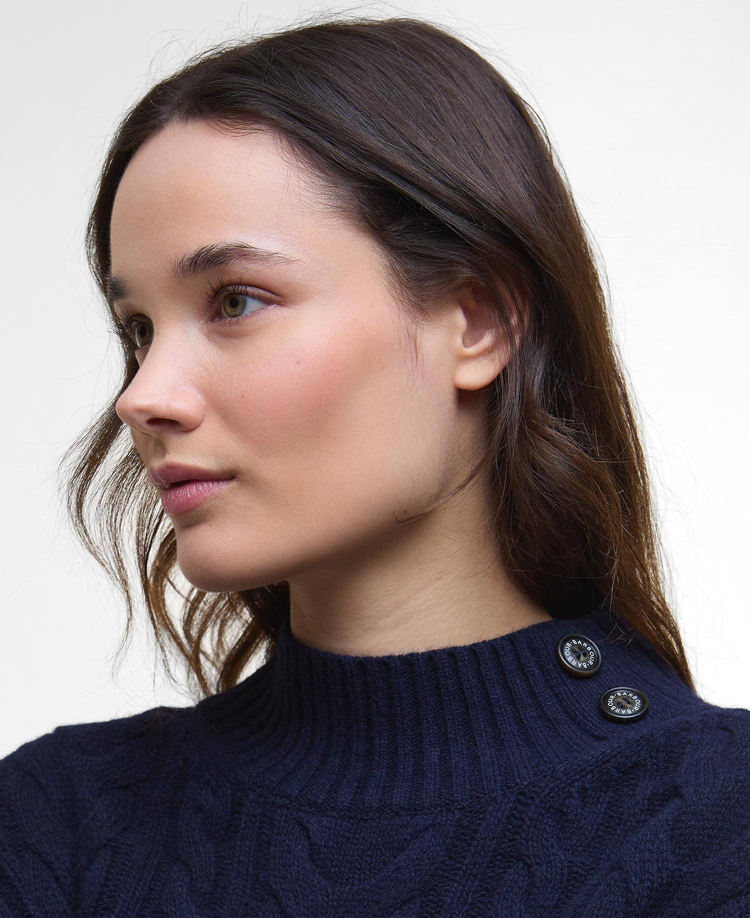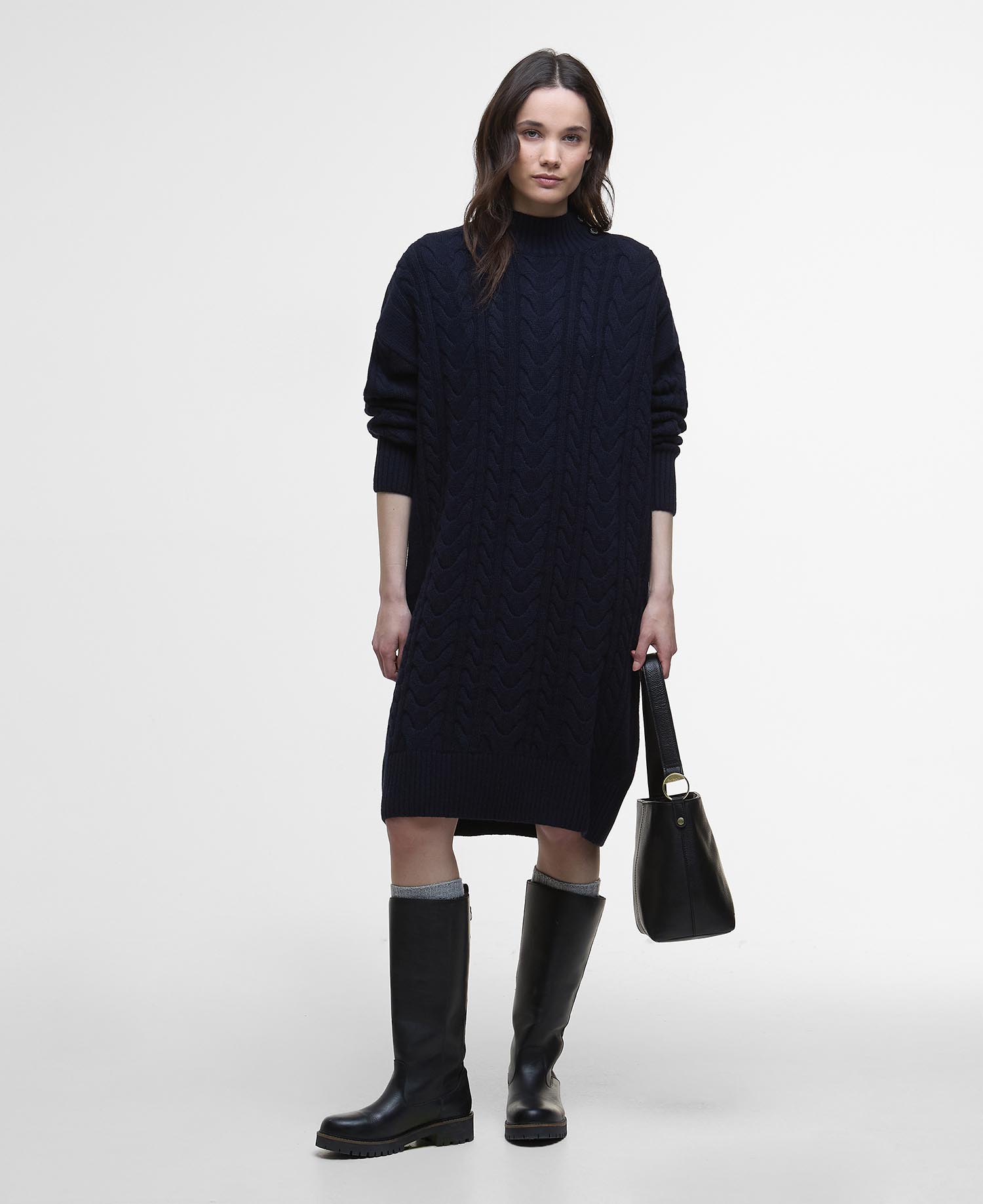 Wrap up in comfort with the Barbour Belford Knitted Mini Dress. Crafted from a cosy wool blend, this dress features a modern cable pattern, relaxed dropped shoulders, and a stylish funnel neck. Finished with ribbed trims and playful mock horn buttons at the side, it’s ready to keep you warm while looking effortlessly put together.