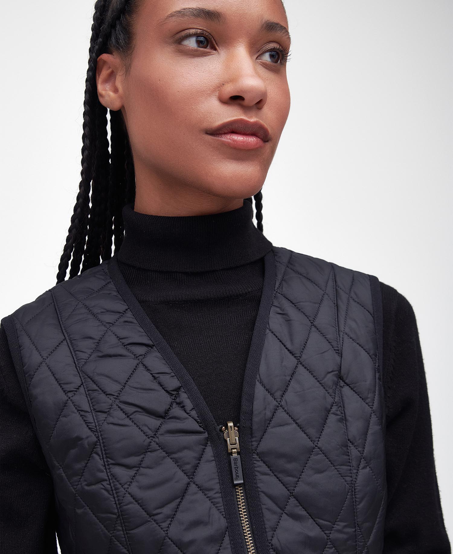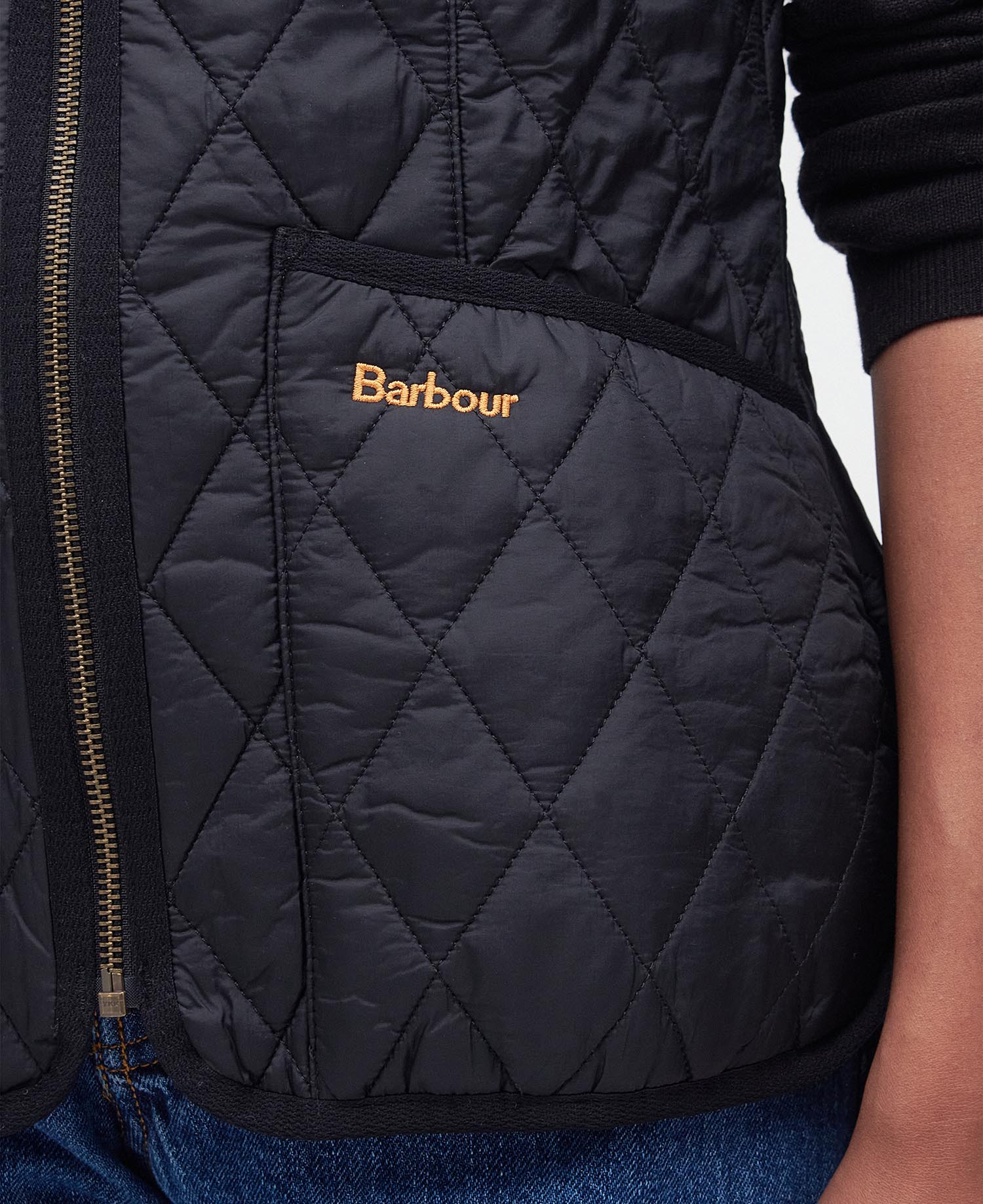 Designed for wearing alone or zipping into a compatible Barbour jacket, the Barbour Betty Interactive Liner is created with a warm diamond-quilted outer. It’s simply detailed with tonal grosgrain binding, contrast Barbour embroidery and deep patch pockets.