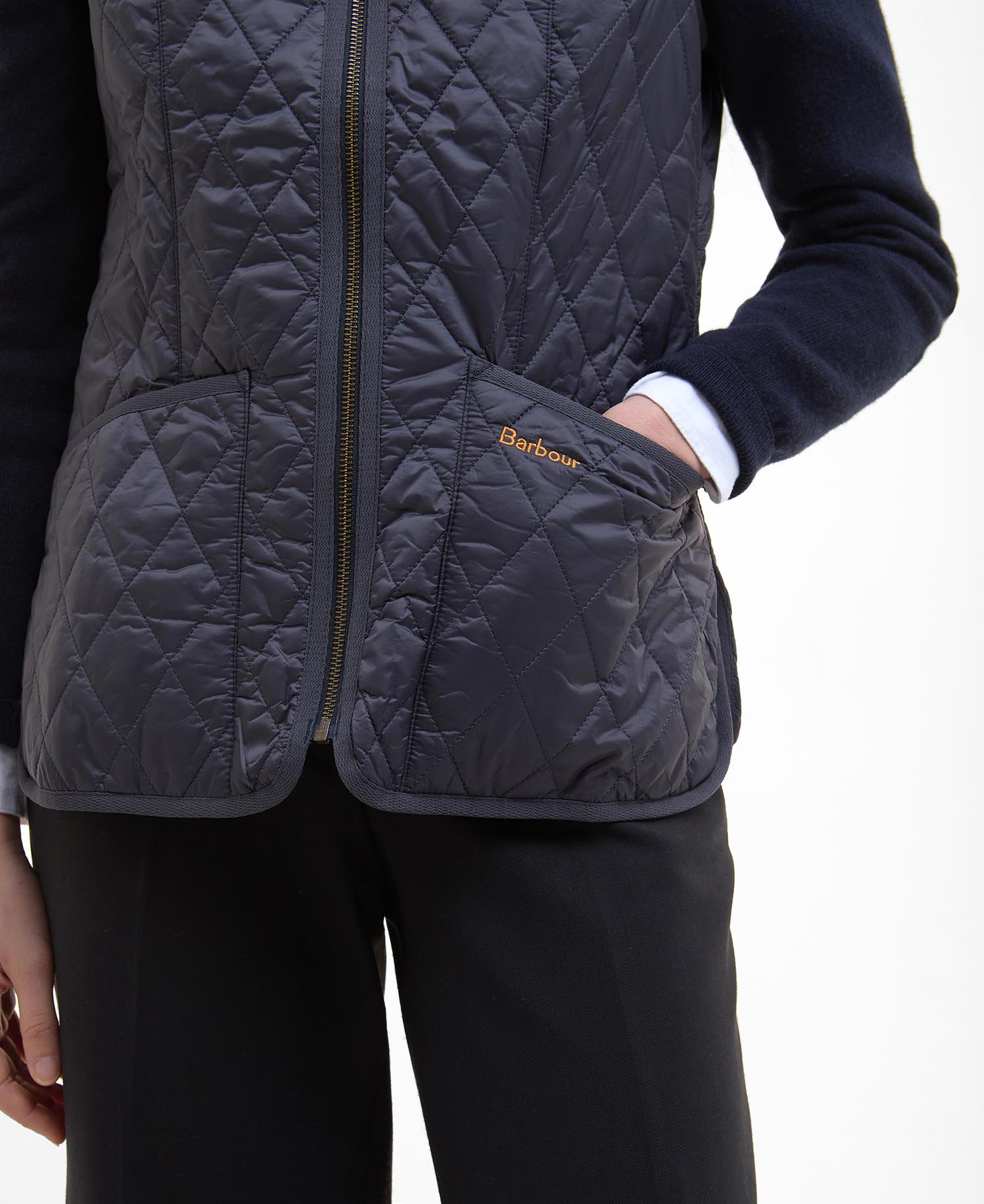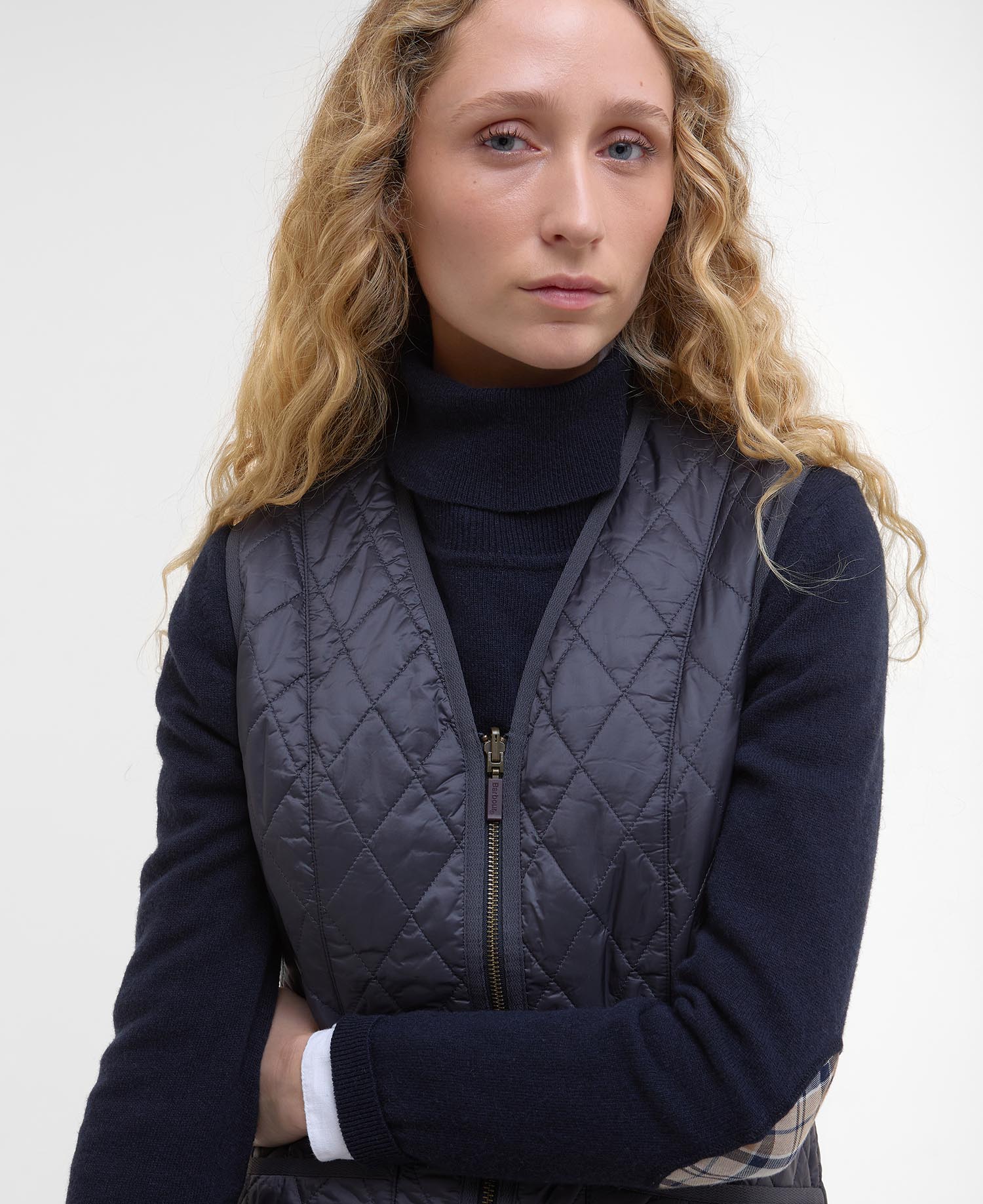 Designed for wearing alone or zipping into a compatible Barbour jacket, the Barbour Betty Interactive Liner is created with a warm diamond-quilted outer. It’s simply detailed with tonal grosgrain binding, contrast Barbour embroidery and deep patch pockets.