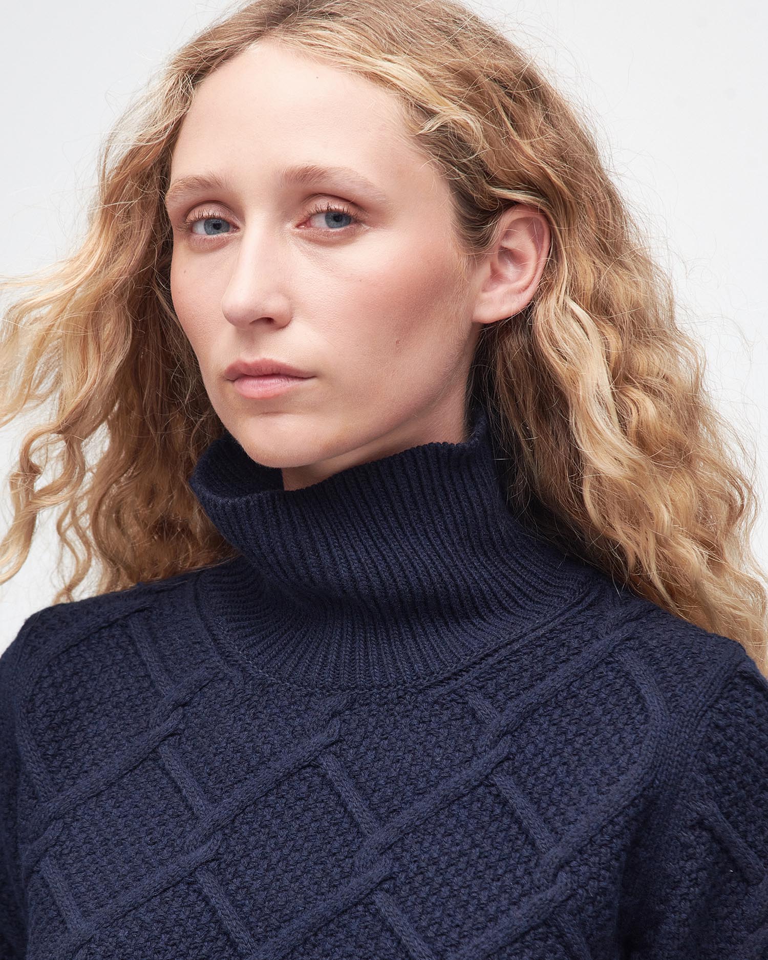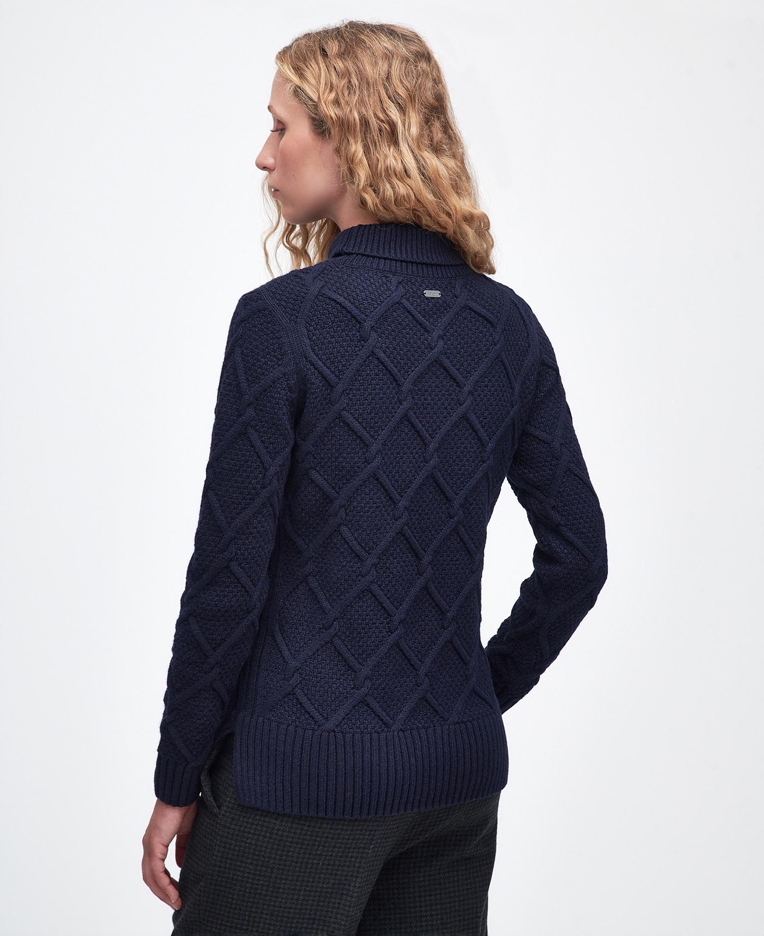 The Barbour Burne sweatshirt is imagined in a warm mix of wool and cotton with a roll neck and long sleeves. It’s detailed with an argyle-inspired cable knit, making it a stylish option for updating casualwear looks.