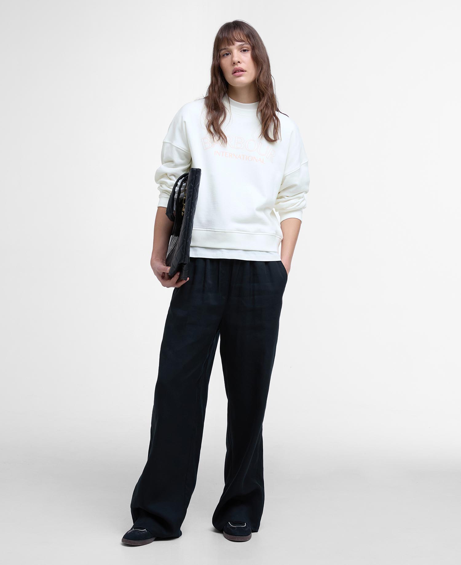 Make a statement while showcasing your brand loyalty to Barbour International with the B.Intl Cali Logo Sweatshirt. Crafted from 100% cotton, this relaxed fit sweatshirt features an embroidered rendition of the Barbour International logo and is perfect for pairing with leggings or jeans for an off-duty day.