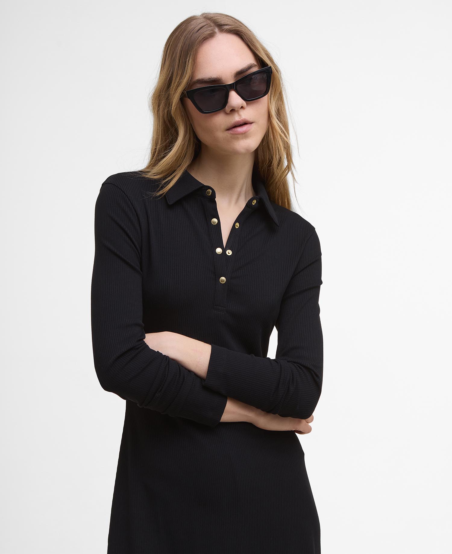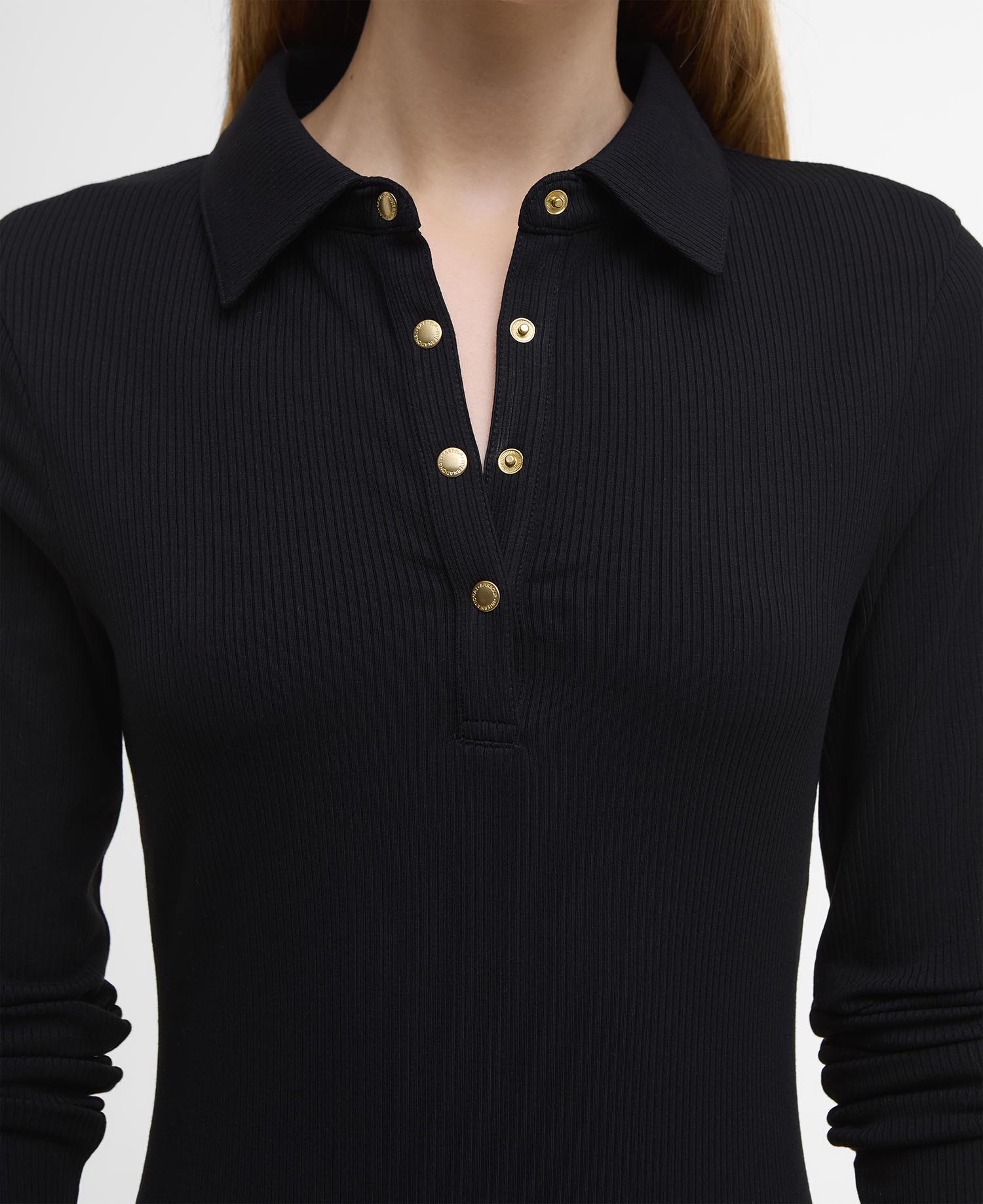There’s no doubt a little black dress is a wardrobe staple, but the B.Intl Chloe Ribbed Mini Dress takes this style up a gear. Crafted to a flattering slim fit from an elasticated ribbed jersey fabric, this long-sleeved mini dress is detailed with our new bright gold-tone branded buttons and finished with a preppy collar.