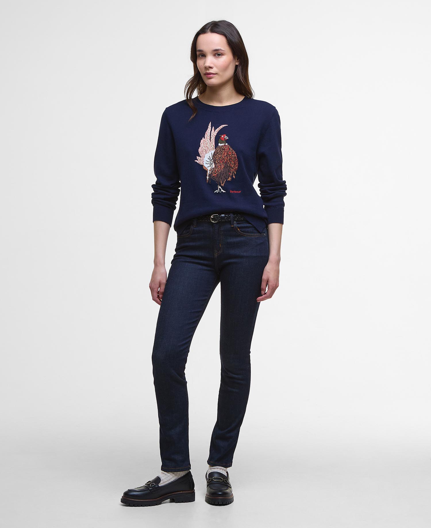 If you’re looking for a playful new addition your knitwear collection, the Barbour Homeside Crew Neck Jumper is the perfect style. Crafted from a lightweight cotton-cashmere knit, this bold design features a pheasant intarsia to the chest and ribbed knit trims. Simply layer it over shirts or style it alone for a statement look.