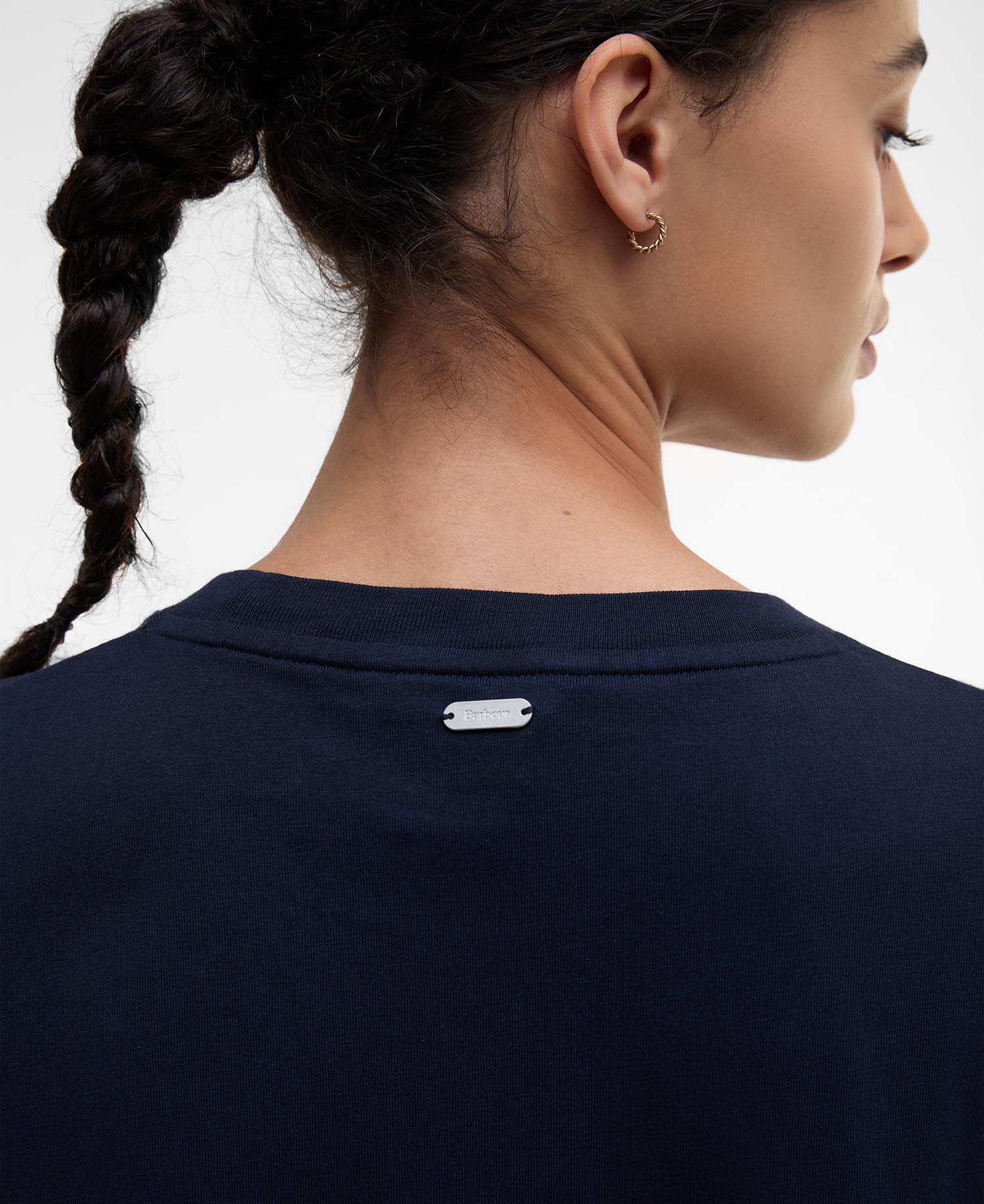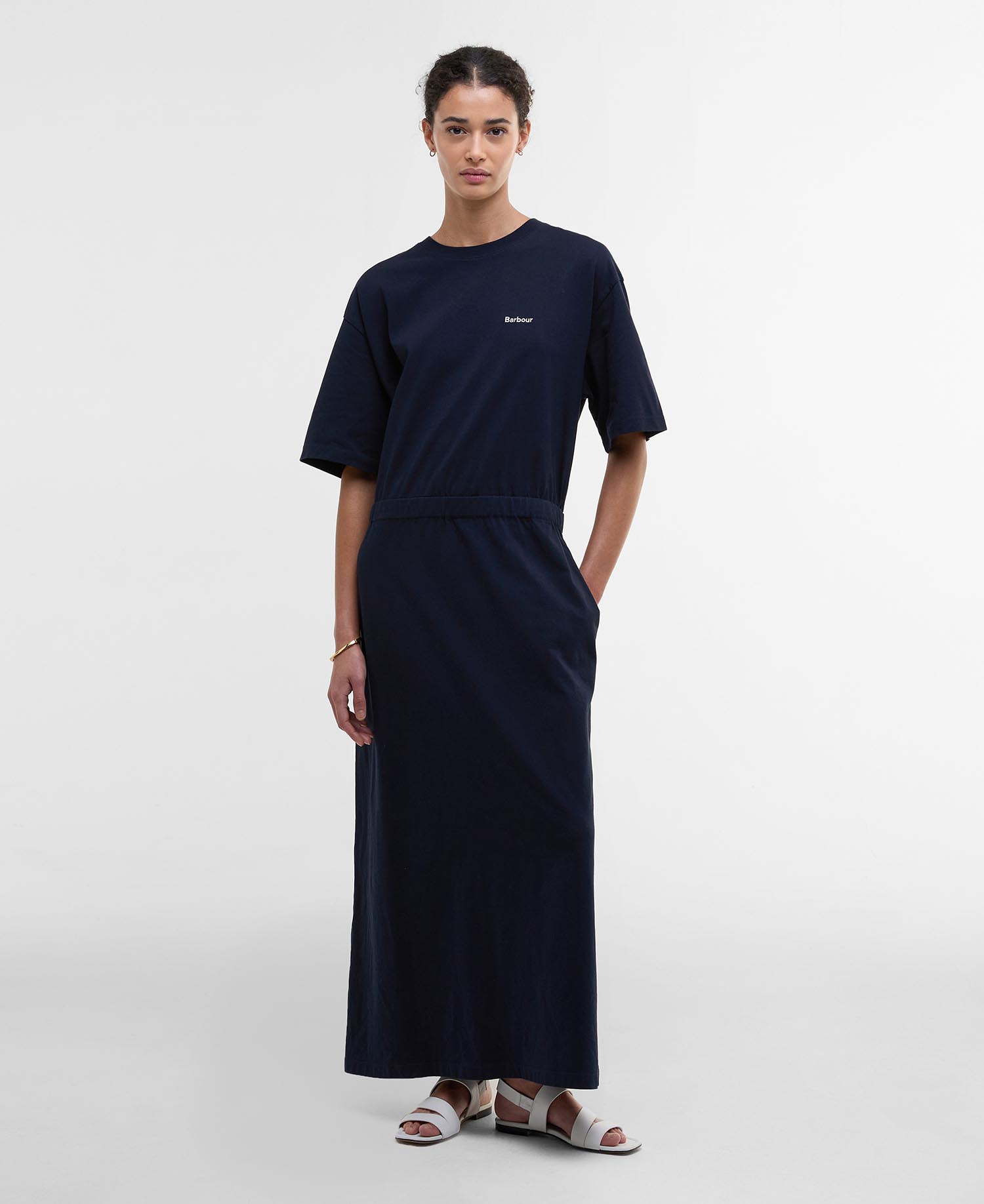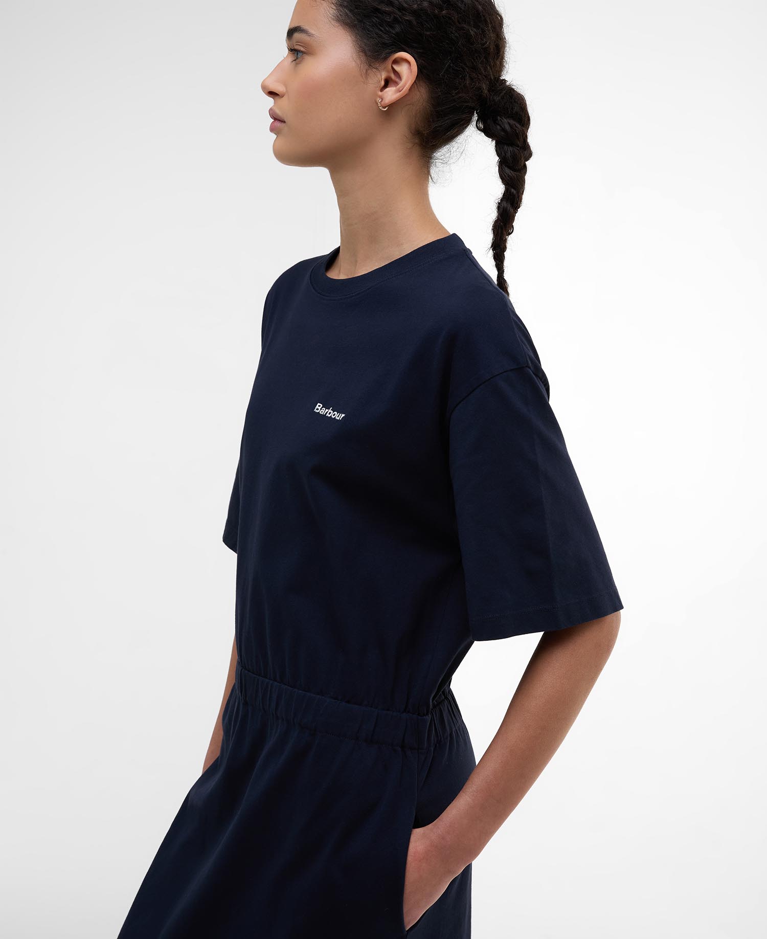Step into effortless style with the Barbour Jema T-Shirt Dress. This relaxed-fit dress features a subtle embroidered Barbourlogo across the chest for a signature branded touch. With its elasticated waistband and soft cotton fabrication, this dress is perfect for everyday adventures.
