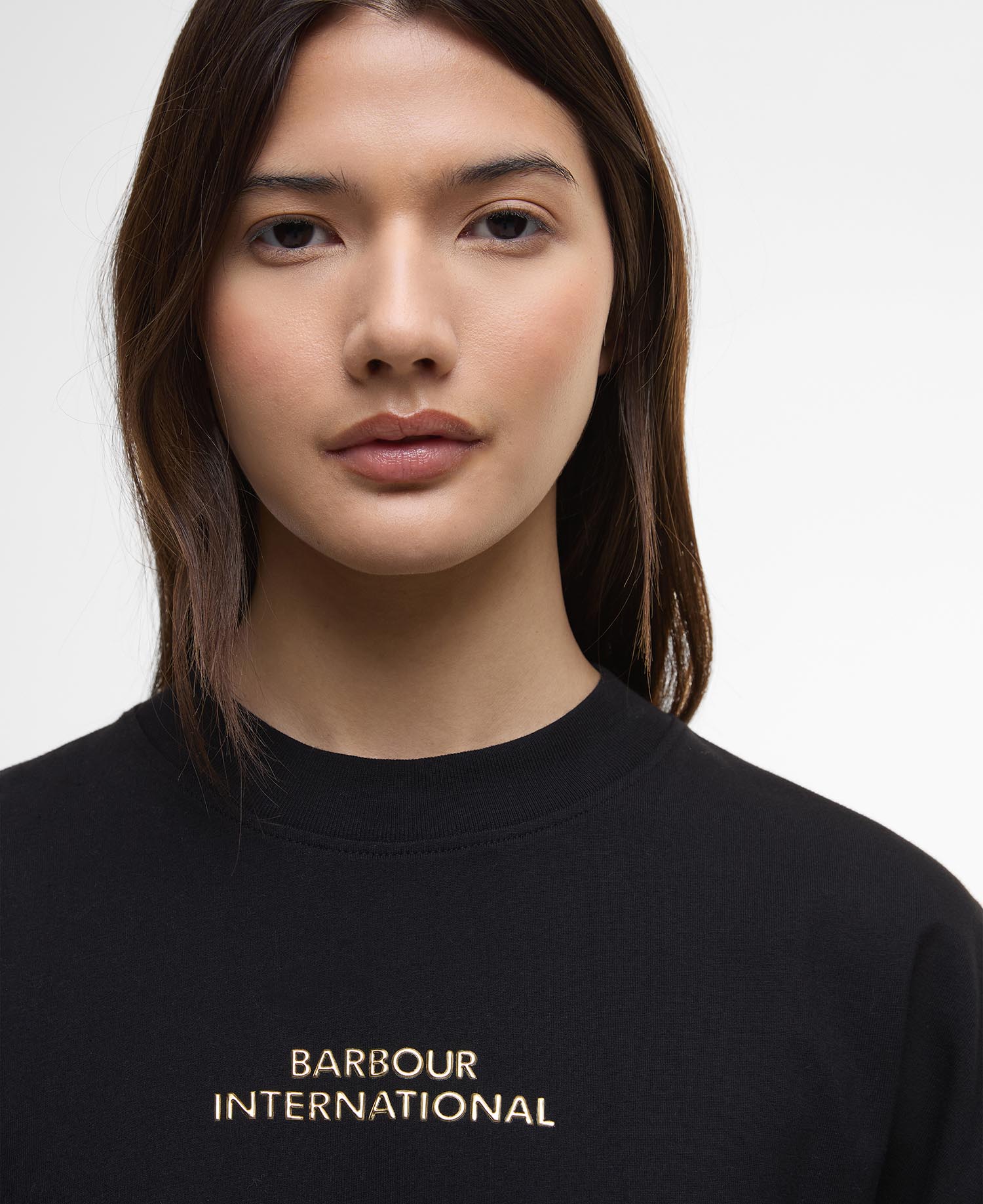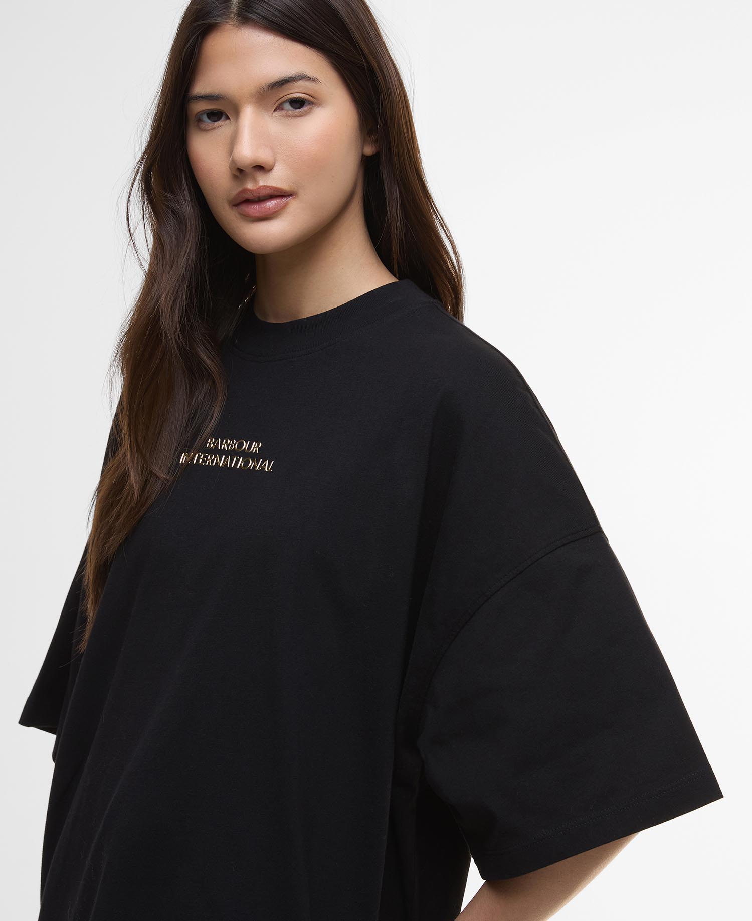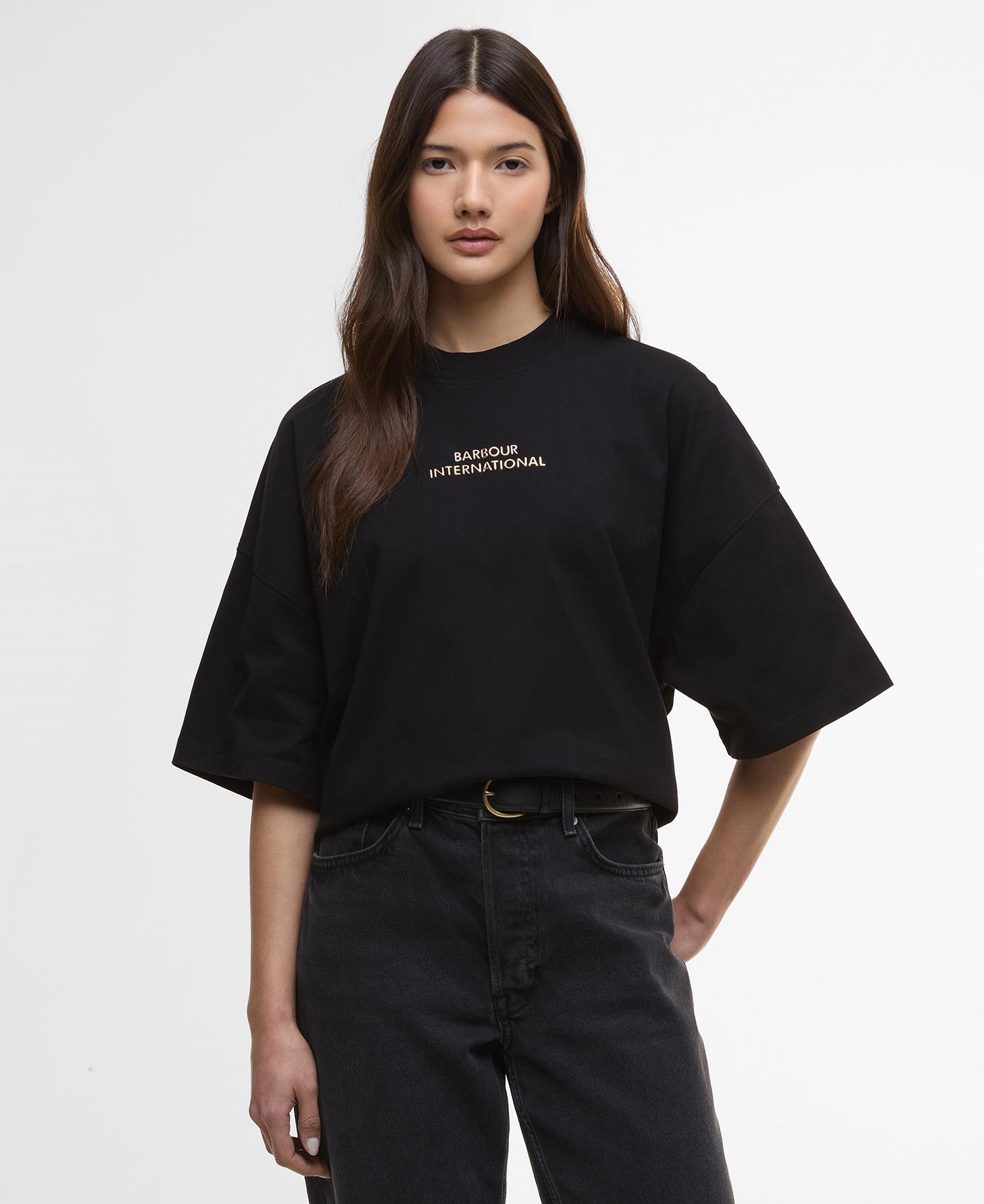 The dramatic silhouette of Barbour International’s newest styles transcends into our everyday staples, such as the B.Intl Kaia Logo T-Shirt. Cut to an oversized fit, this slouchy t-shirt feature dropped shoulders and sleeves for a laid-back look.