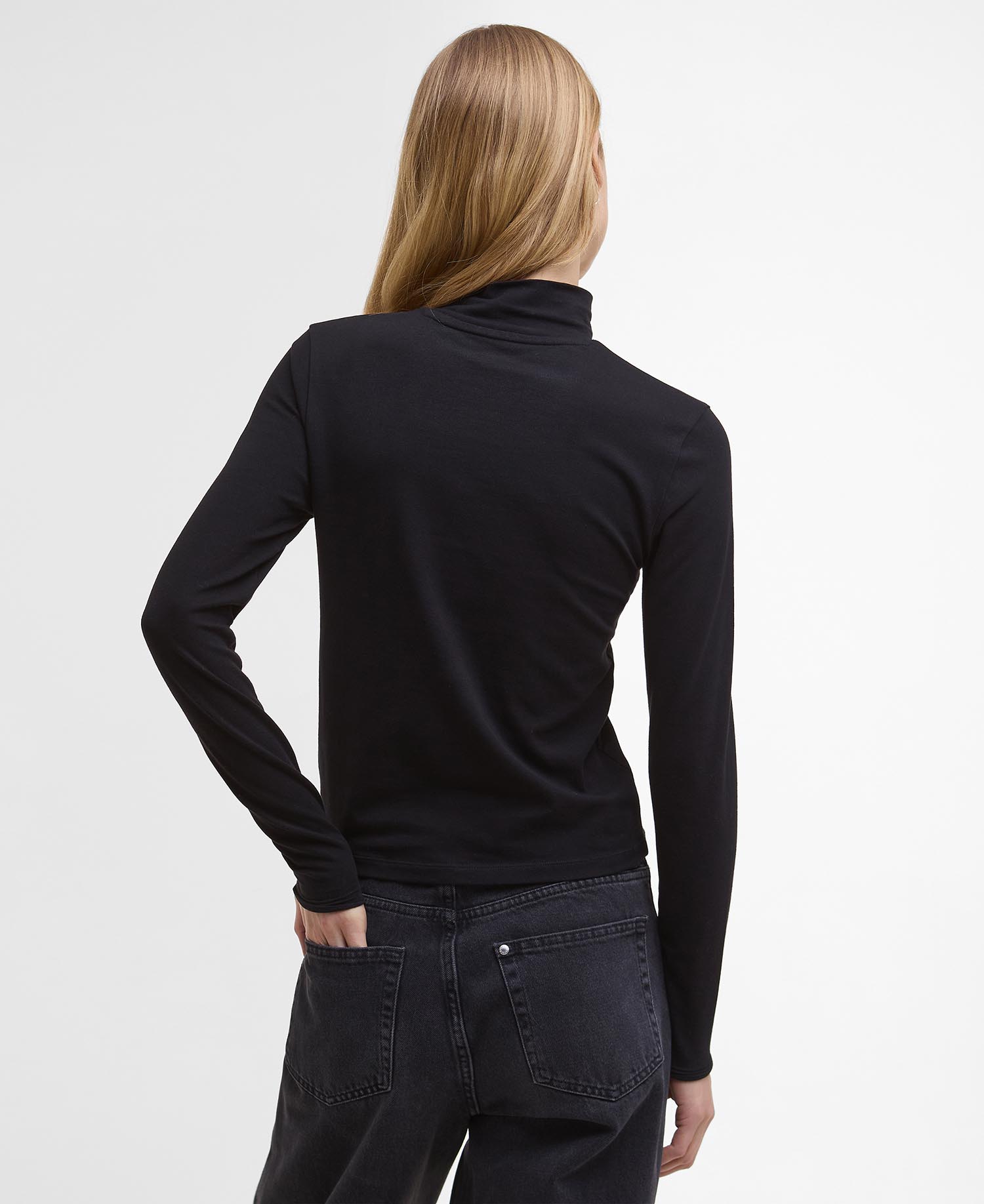 Elevate your everyday style with the B.Intl Kylie T-Shirt, where comfort meets sophistication. This slim-fit, long-sleeve jersey funnel neck is perfect for layering or wearing on its own, offering versatility for any wardrobe.