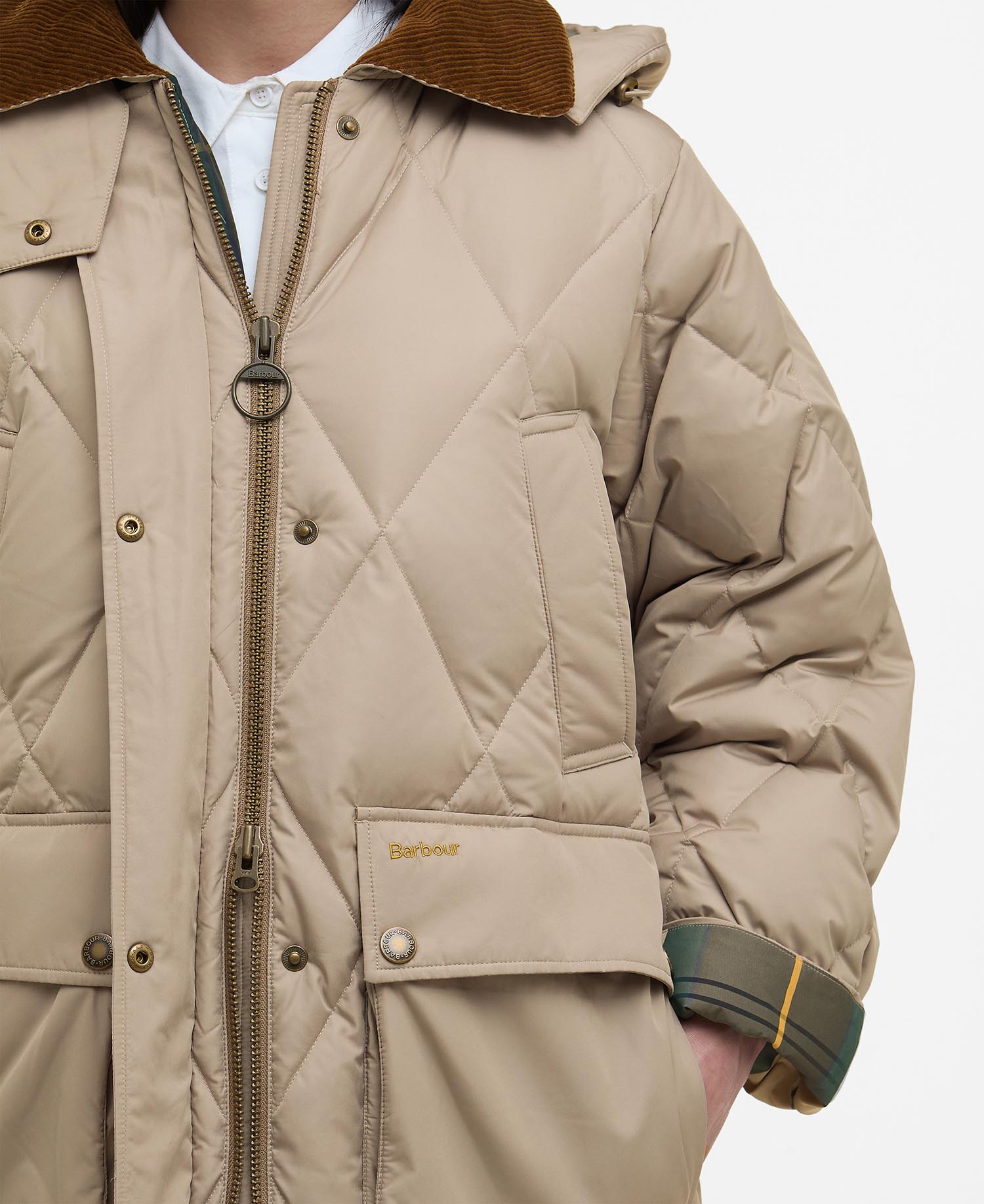 Introducing the Barbour Longline Yasmin Down Jacket, your ultimate cold-weather essential inspired by our iconic Bedale design. Featuring our signature diamond quilting, this jacket combines timeless style with exceptional warmth. Thoughtfully designed with cosy hand-warmer chest pockets and a detachable hood, it offers both practicality and comfort. Lined with Barbour’s signature tartan, the Yasmin Down Jacket delivers a perfect blend of sophistication and unbeatable warmth.