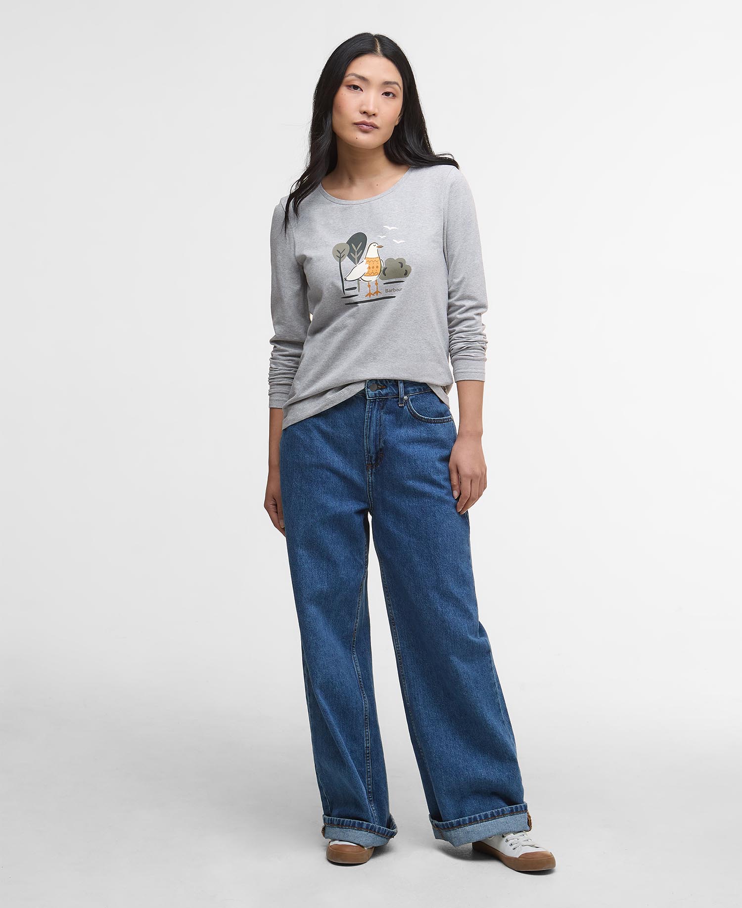 Barbour Women’s Lossie Long-sleeved T-shirt | Light Grey Marl