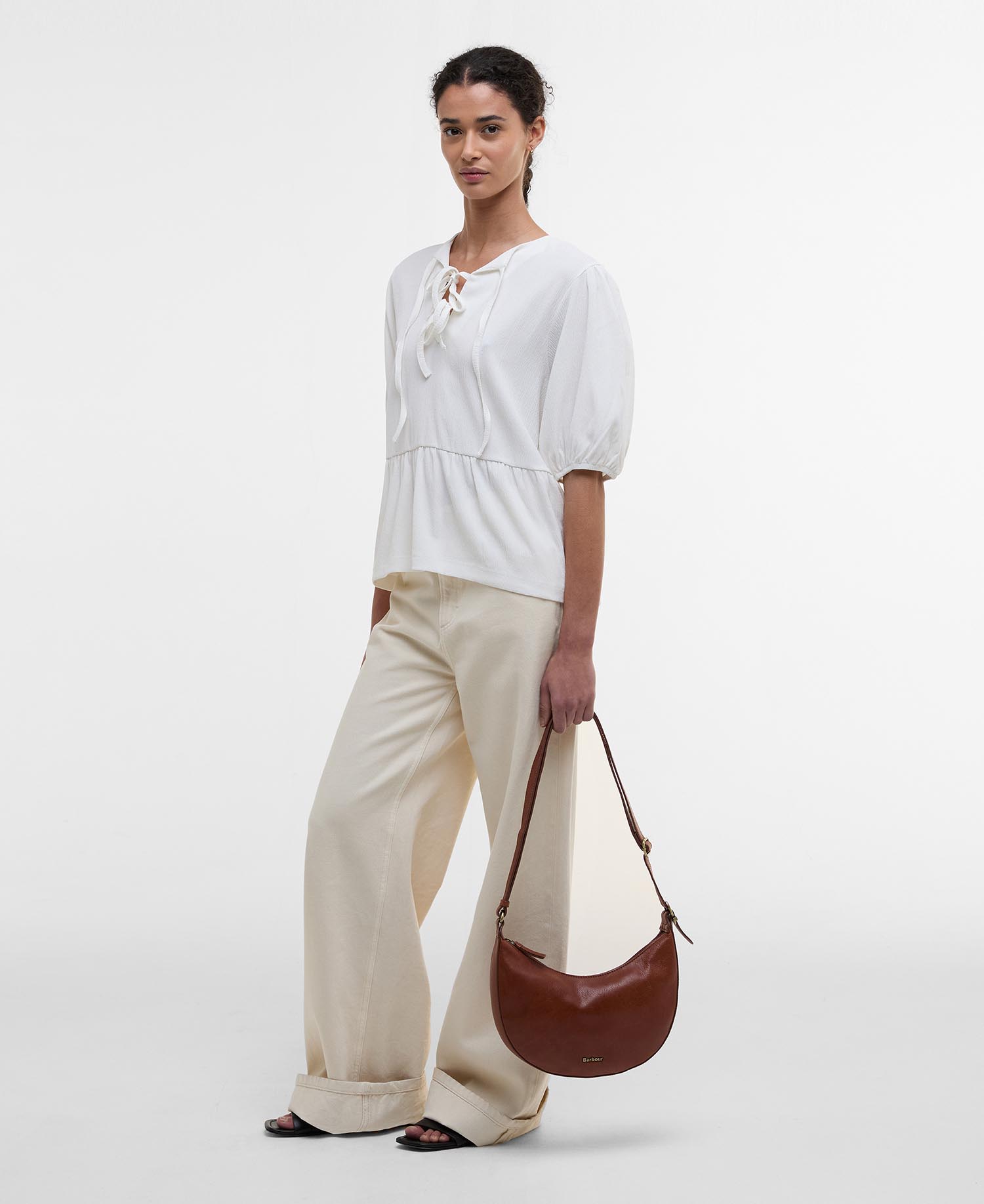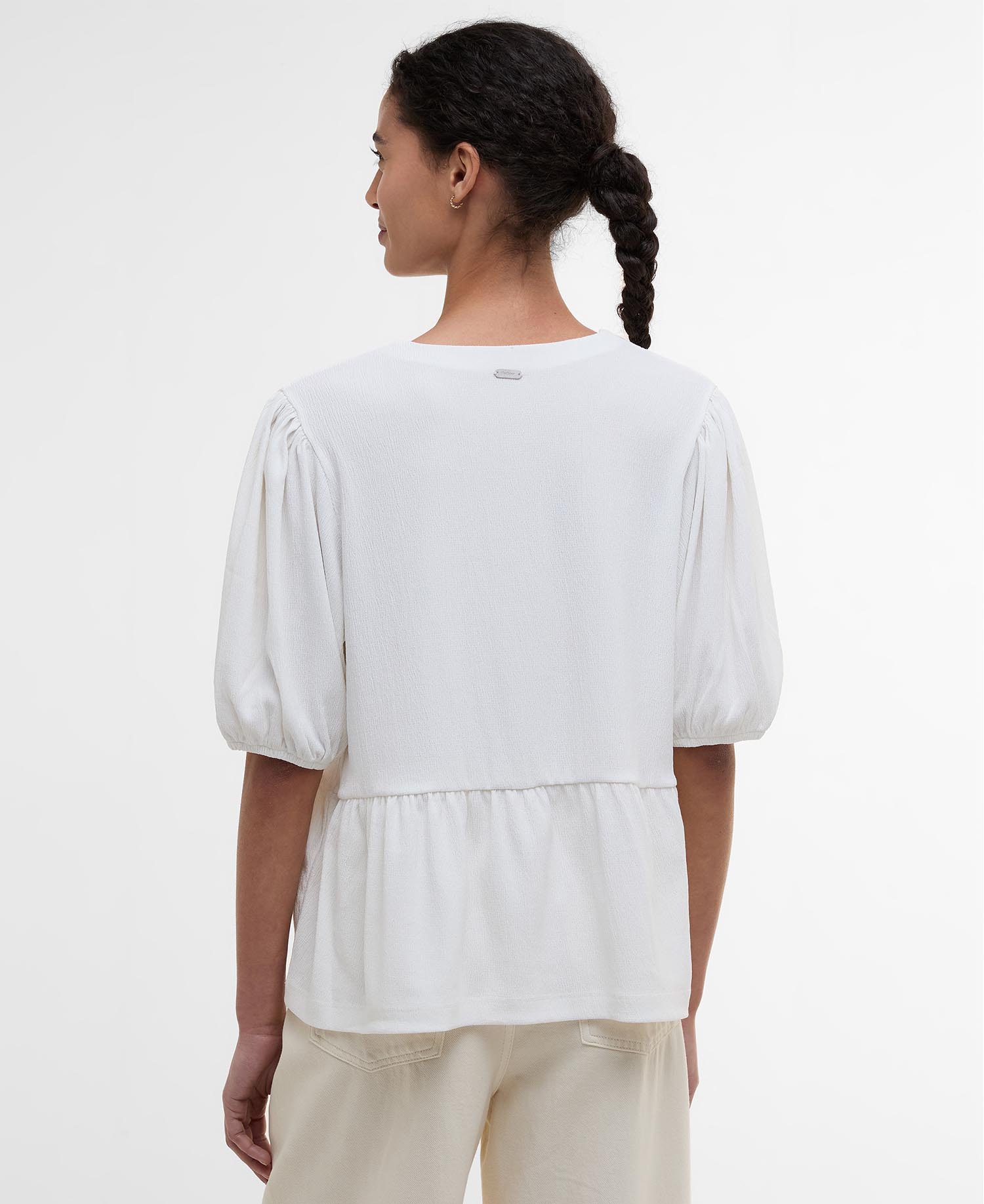 Meet your new summer staple, the Barbour Louise Peplum Blouse is sure to be a go-to, this season. With puff sleeves, a flattering peplum waist and tie fastening details, this style is perfect for pairing with jeans and denim shorts in the warmer months.