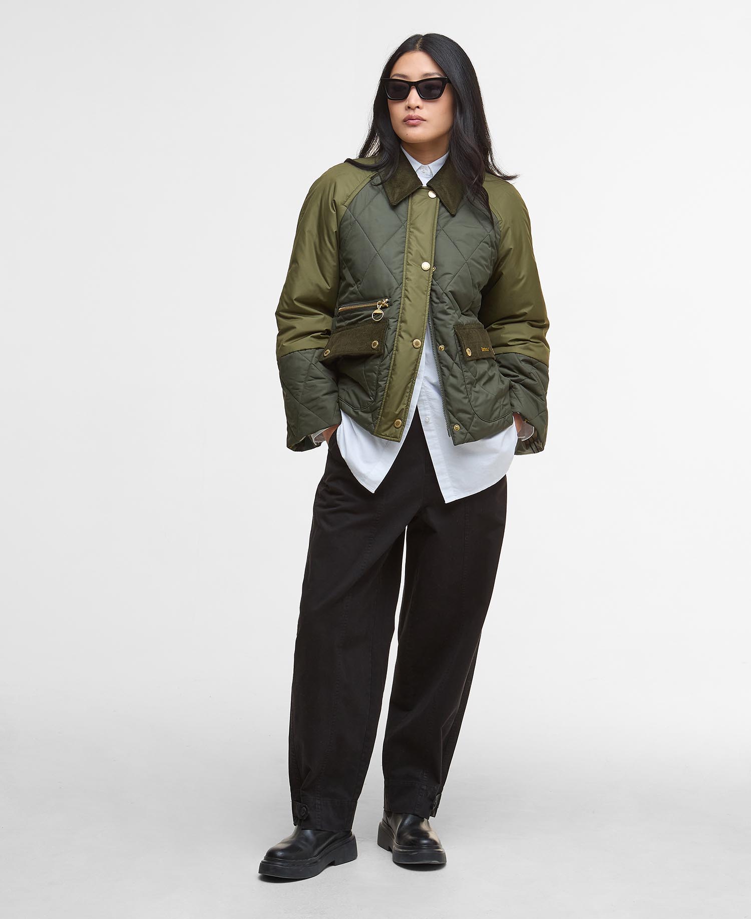 This season, Barbour puts a spotlight on its distinctive diamond quilting – see here on the Barbour Martha Quilted Jacket. Boasting a patchwork of quilted and unquilted panels, this box-fit style showcases Barbour’s outerwear expertise. Finished with a branded stud fastening and cord collar, it’s a true representation of Barbour’s craftsmanship in oversized proportions.