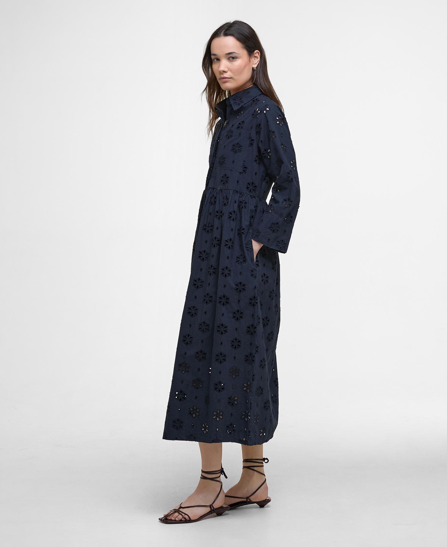 If you’re looking for a versatile summer staple that lends itself to both casual weekend wear and occasion wear alike, the Barbour Melissa Broderie Anglaise Midi Dress is the perfect choice. Crafted from a delicate floral Broderie Anglaise and three-quarter length sleeves, this style looks equally as sophisticated when worn with sandals or heels.