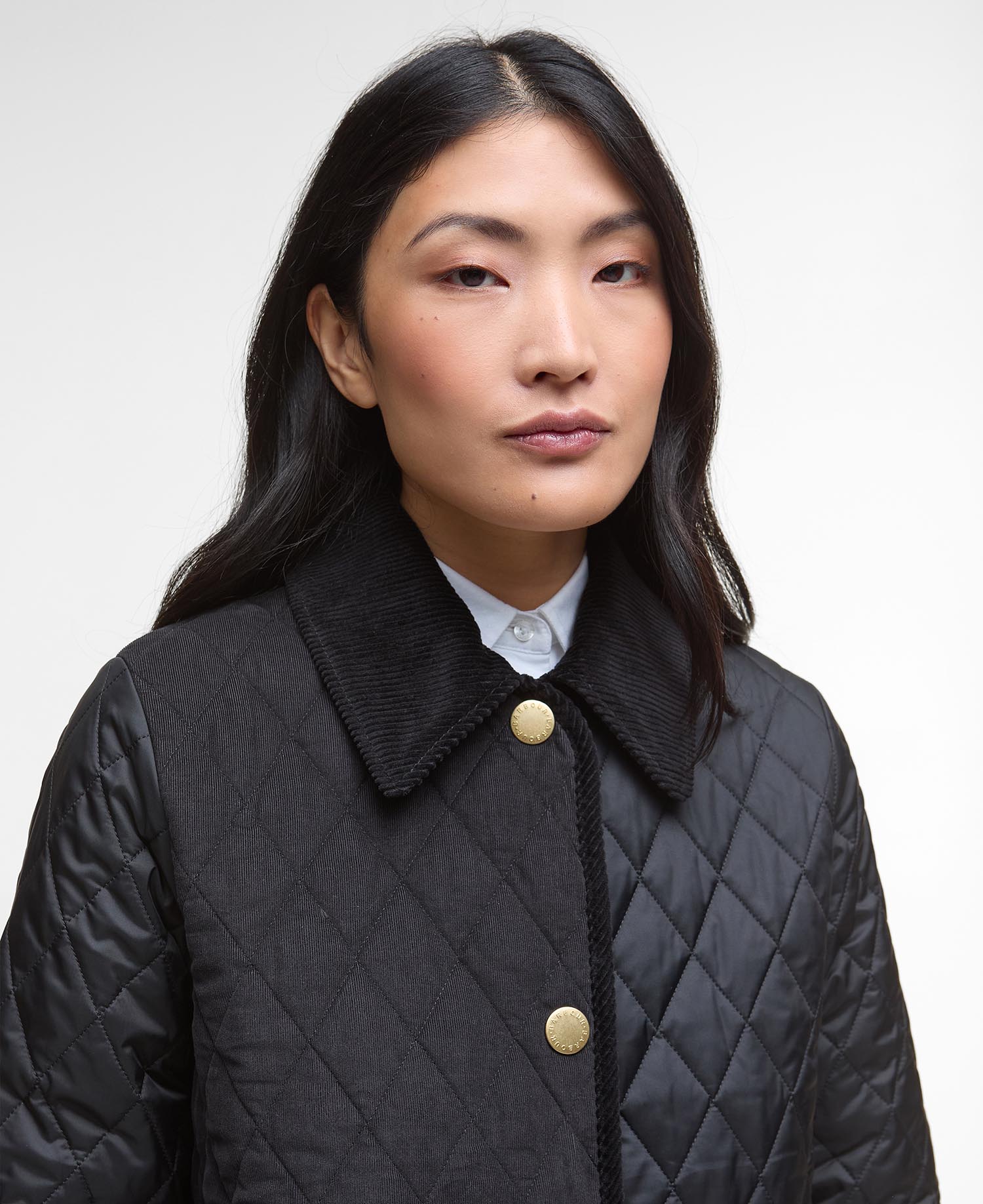 If you’re looking for a reliable layer to see you through the changing seasons, the Barbour Meryl Quilted Jacket makes an excellent choice. This diamond quilted design is complemented by a patchwork of our needlecord cord with Liddesdale inspired patch pockets to finish. Complete with an oversized cord collar and branded stud fastening, it’s perfect for adding a contemporary twist on Barbour heritage to your outerwear selection.
