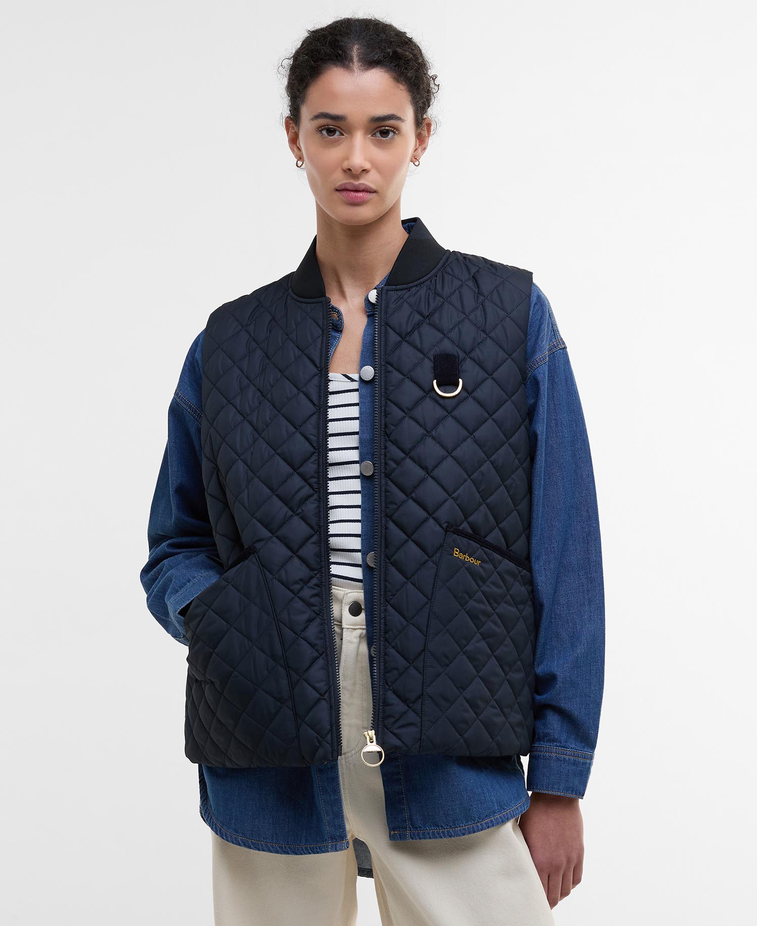 Transition your wardrobe through the changing seasons with lightweight layers, such as the Barbour Rosalie Gilet. This short-length style is perfect for pairing over T-shirts and sweatshirts but looks equally as good when paired under lightweight jackets for added warmth on colder days.