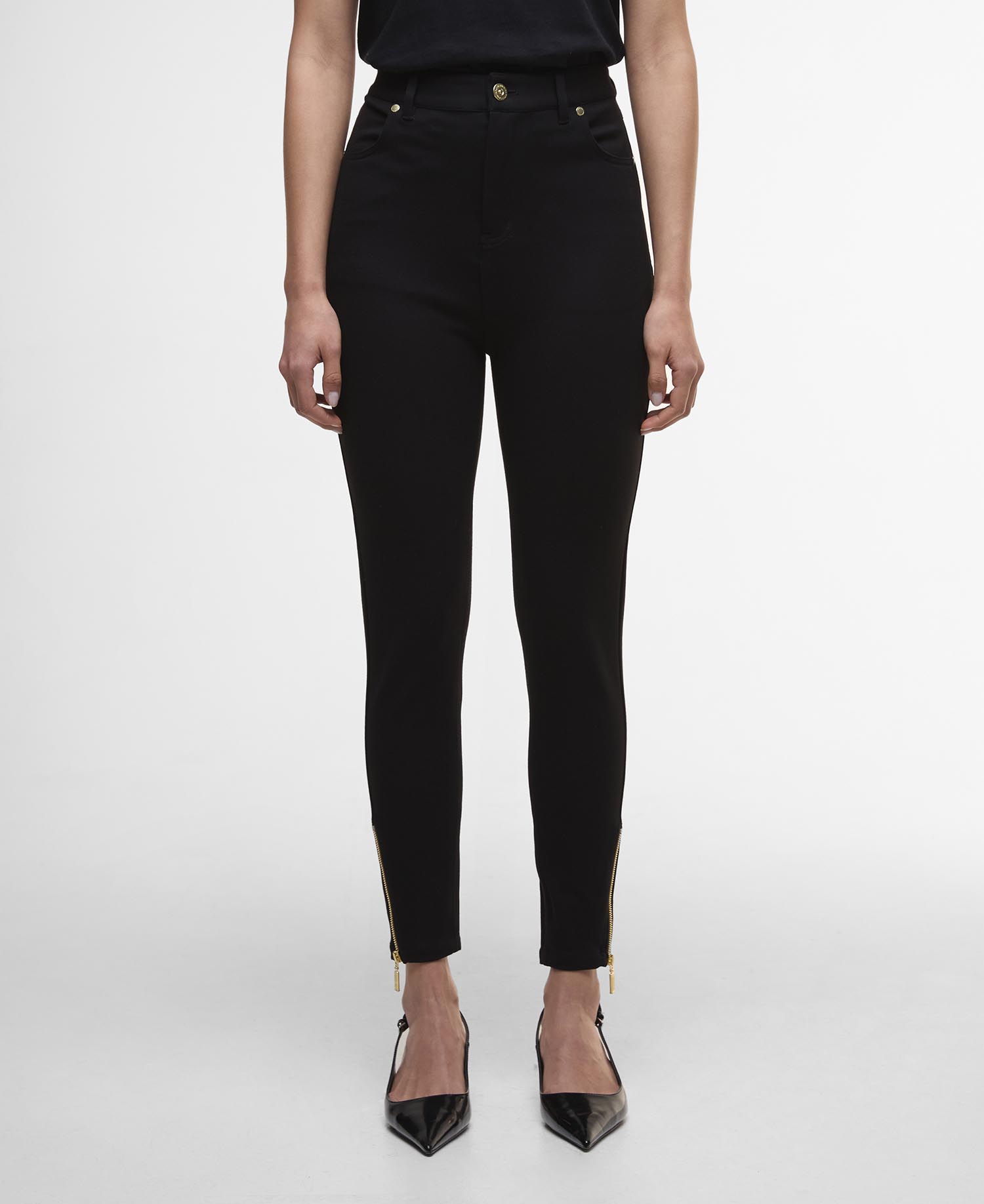 Turning sophisticated silhouettes into bold evening wear, the B.Intl Stella Slim Trousers are a must for an effortlessly stylish look. Crafted to a slim fit for an everyday look and detailed with a button and zip-fly fastening, these trousers look perfect when paired with t-shirts and knitwear alike.