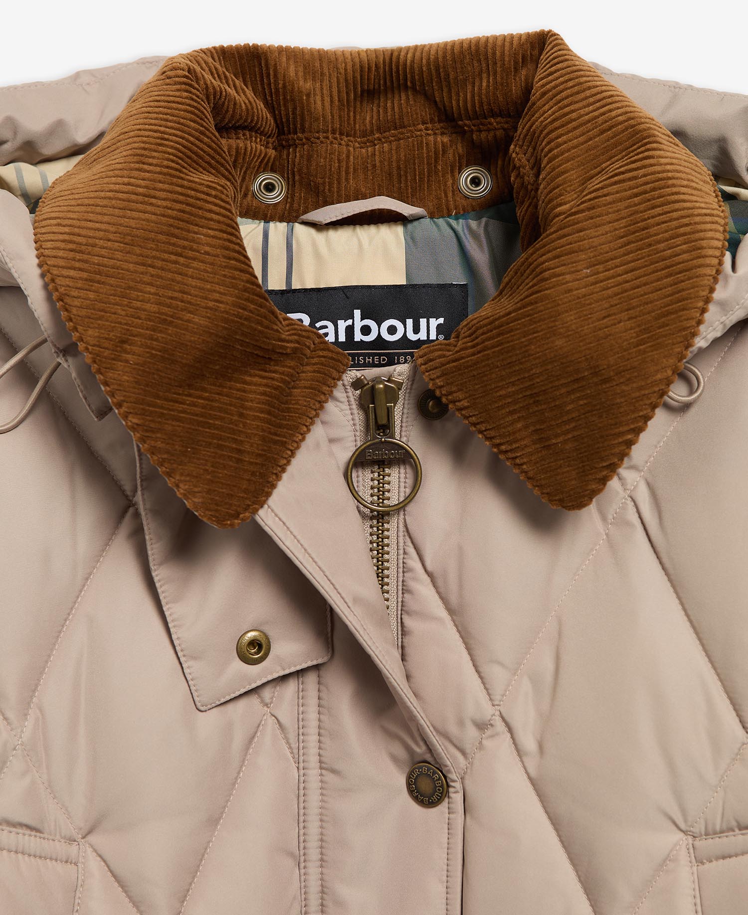 Introducing the Barbour Yasmin Down Jacket, your ultimate cold-weather essential inspired by our iconic Bedale design. Featuring our signature diamond quilting, this jacket combines timeless style with exceptional warmth. Thoughtfully designed with cosy hand-warmer chest pockets and a detachable hood, it offers both practicality and comfort. Lined with Barbour’s signature tartan, the Yasmin Down Jacket delivers a perfect blend of sophistication and unbeatable warmth.